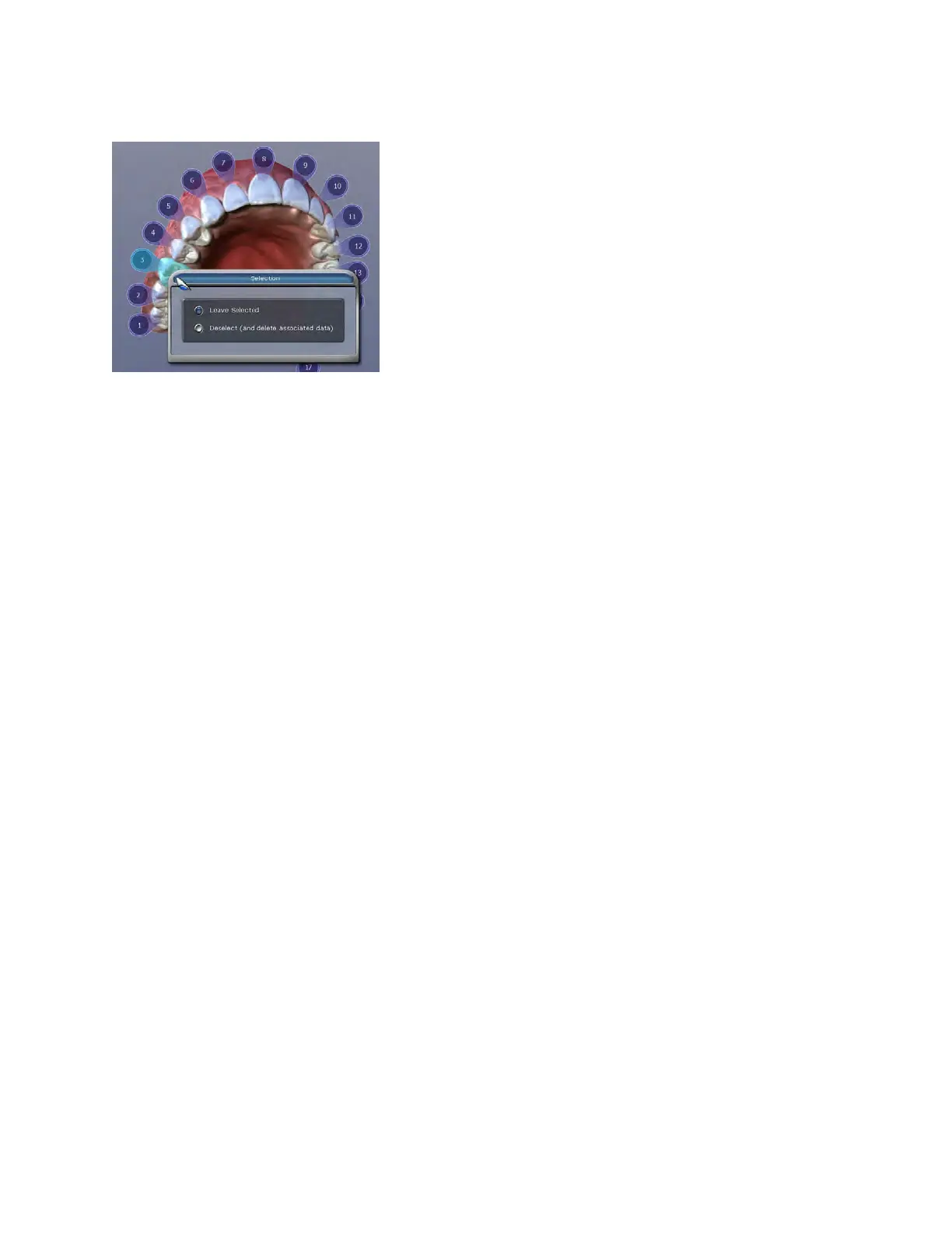 1 If the wrong tooth was highlighted for the restoration, right-click the tooth and click Deselect.