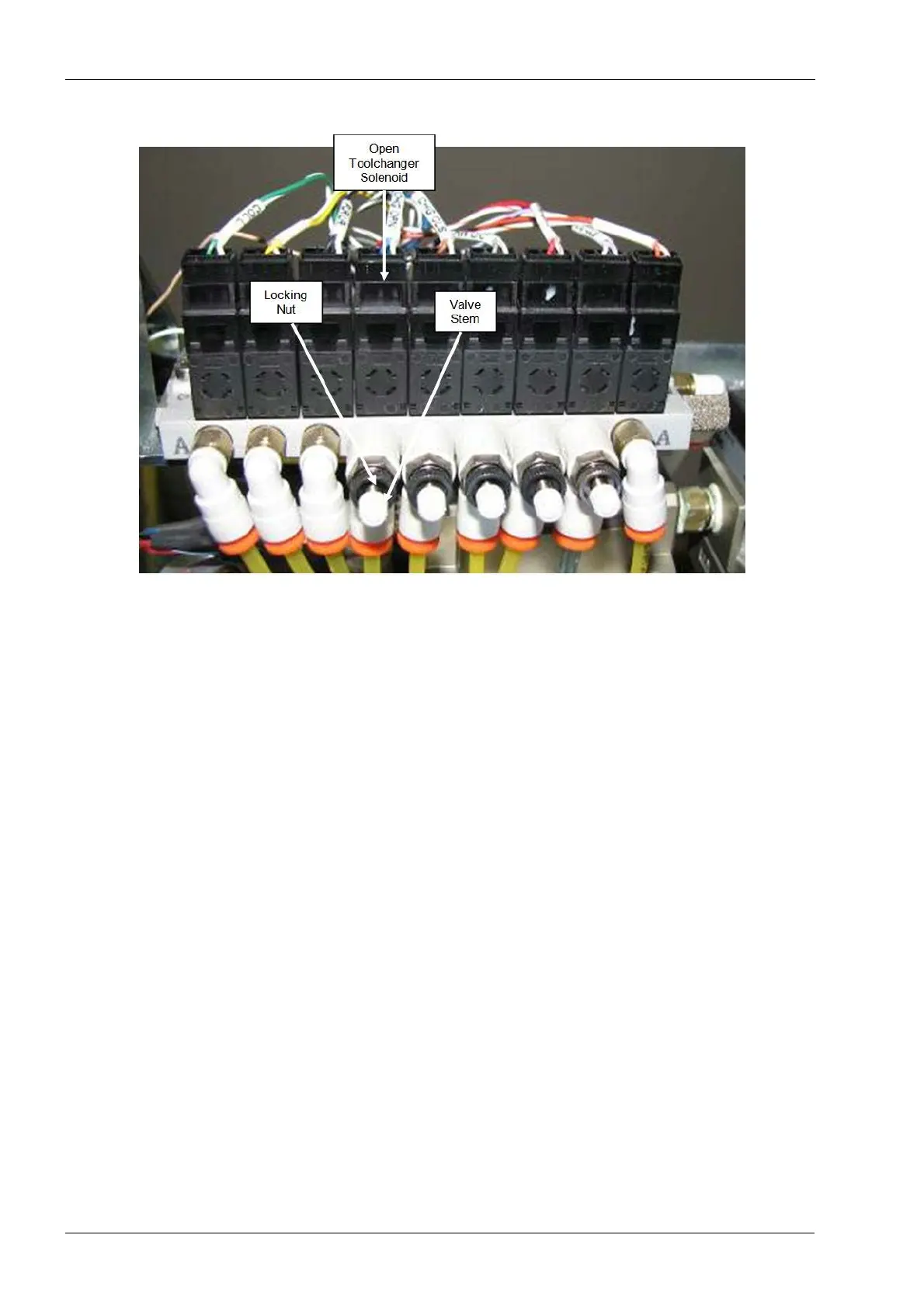 1. Reset the open tool changer valve stem to a good starting position by releasing the