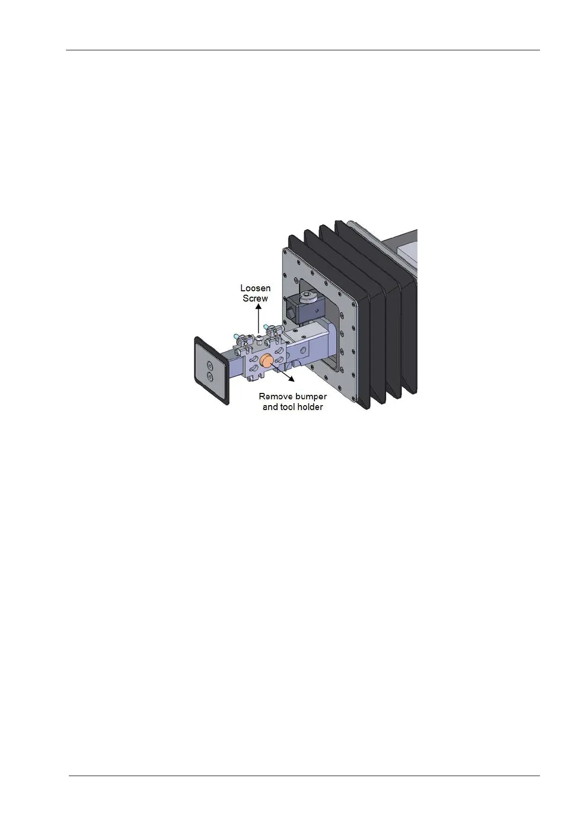 10. Push the orange tool bumper to either side and out of the tool changer arm.