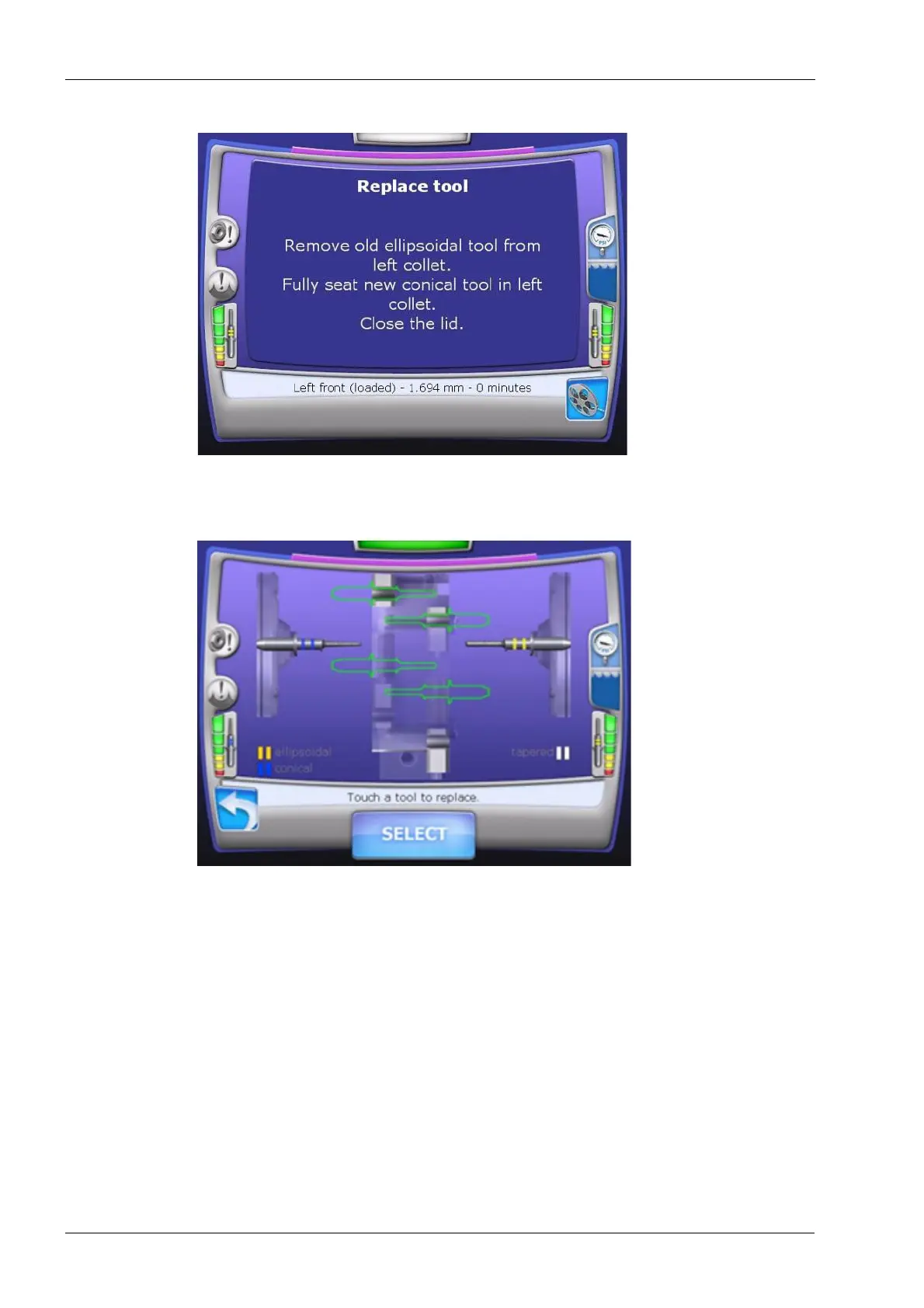 7. Select the conical burr in the left side and then touch the SELECT button.