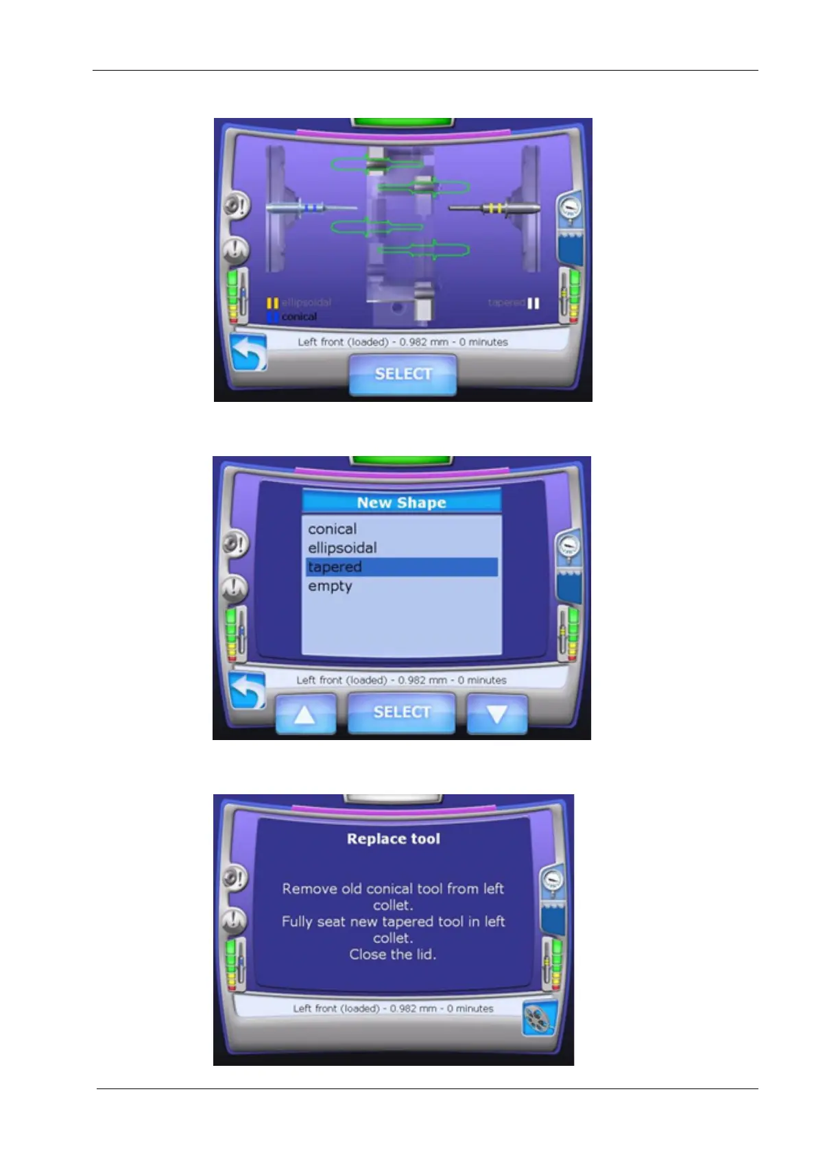 8. From the New Shape screen, touch tapered and then touch the SELECT button.