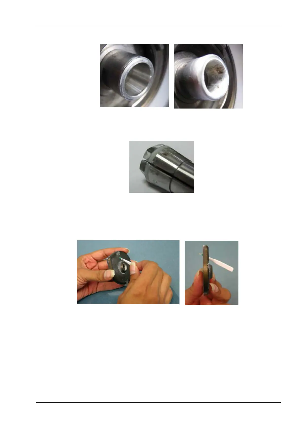 13. Insert the Nozzle Cleaning Brush in the small holes on the spindle cap at an angle.