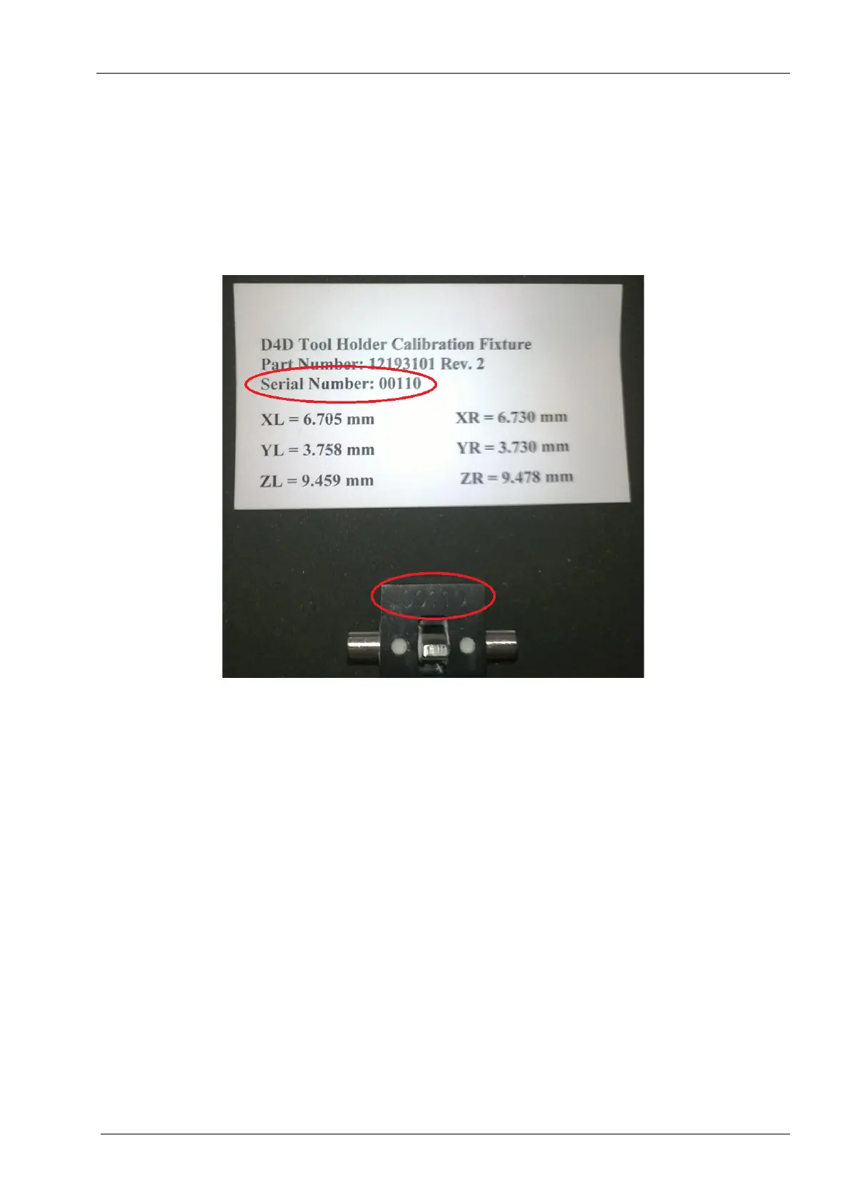 Figure 42: Example of Tool Holder Calibration Fixture serial number