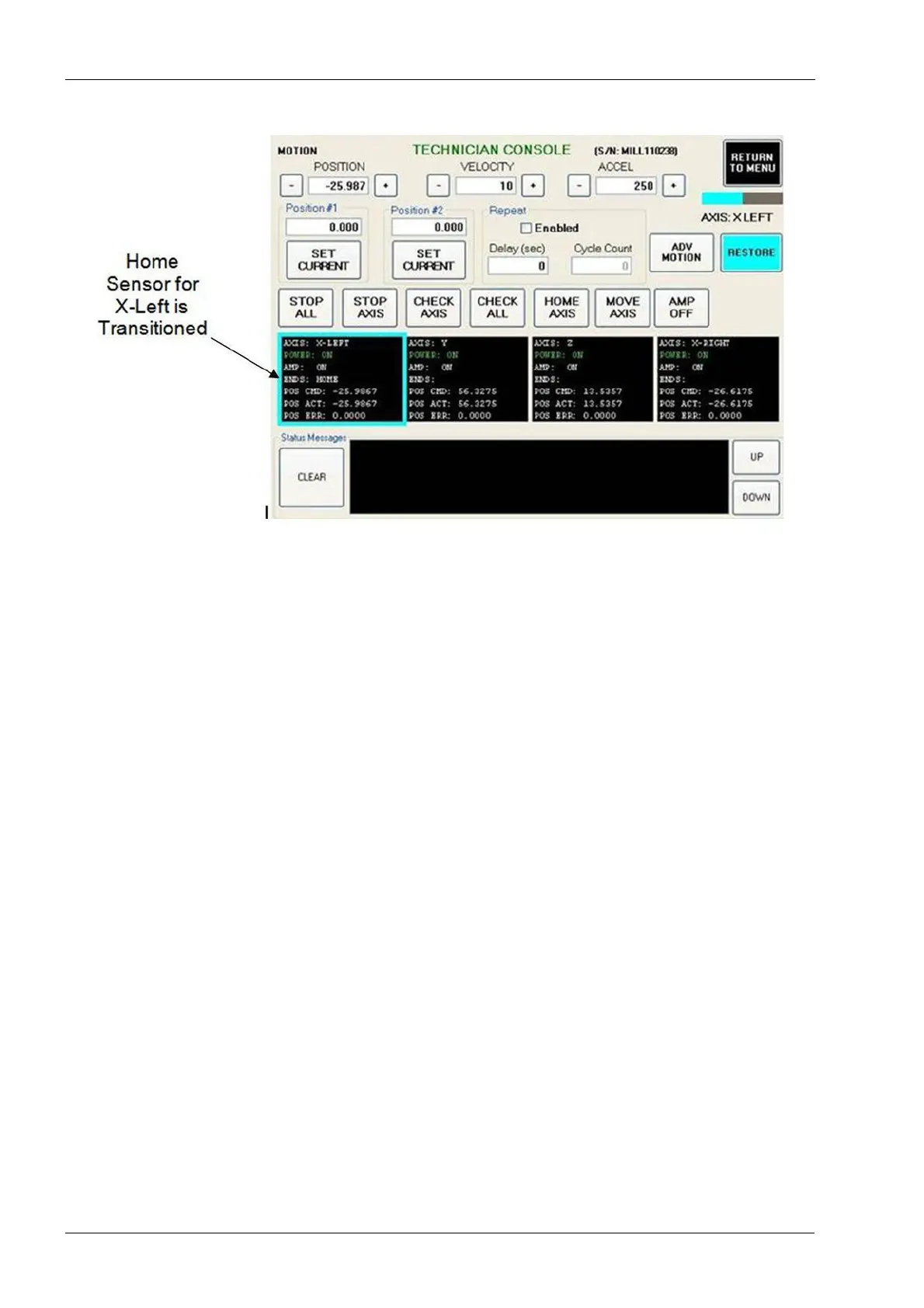each axis. The word “Home” or the word “LIMIT” depending on which sensor is