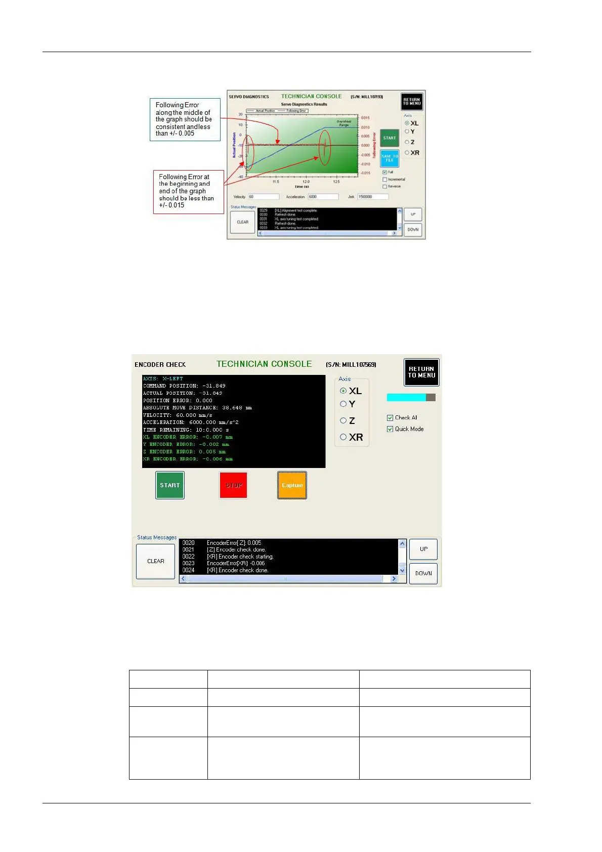 Start button. After a few minutes, the encoder error for each axis will be printed in the