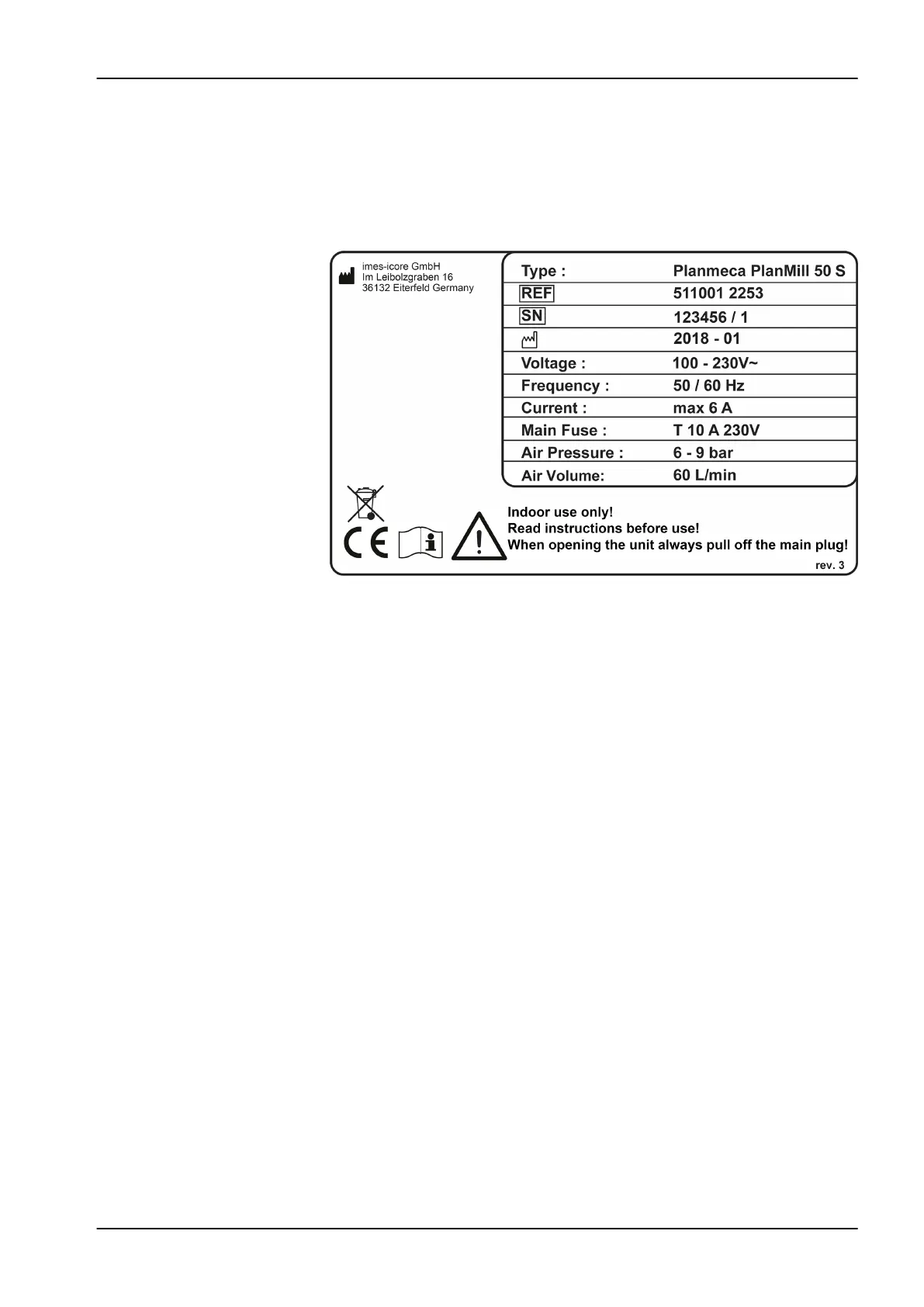 Planmeca PlanMill 50 S - Device Plate