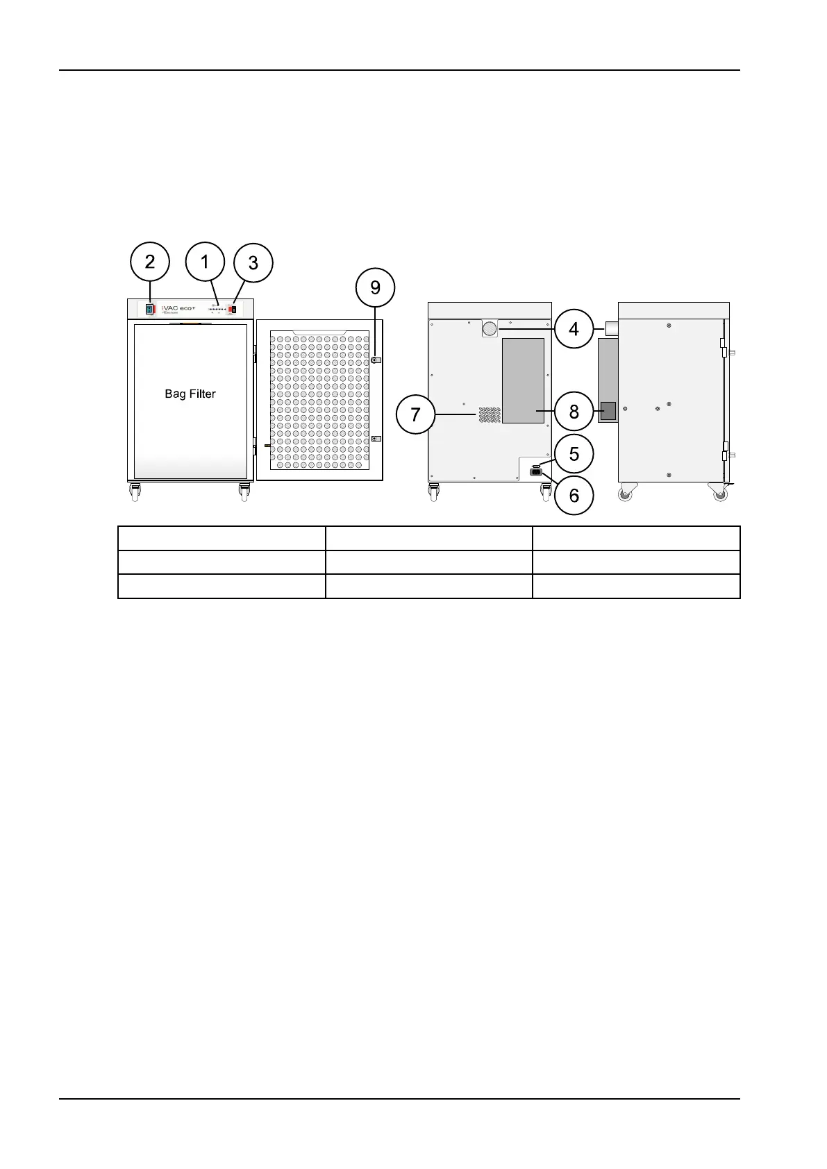 1. Unit/filter condition display 2. On/off switch 3. Motor function switch