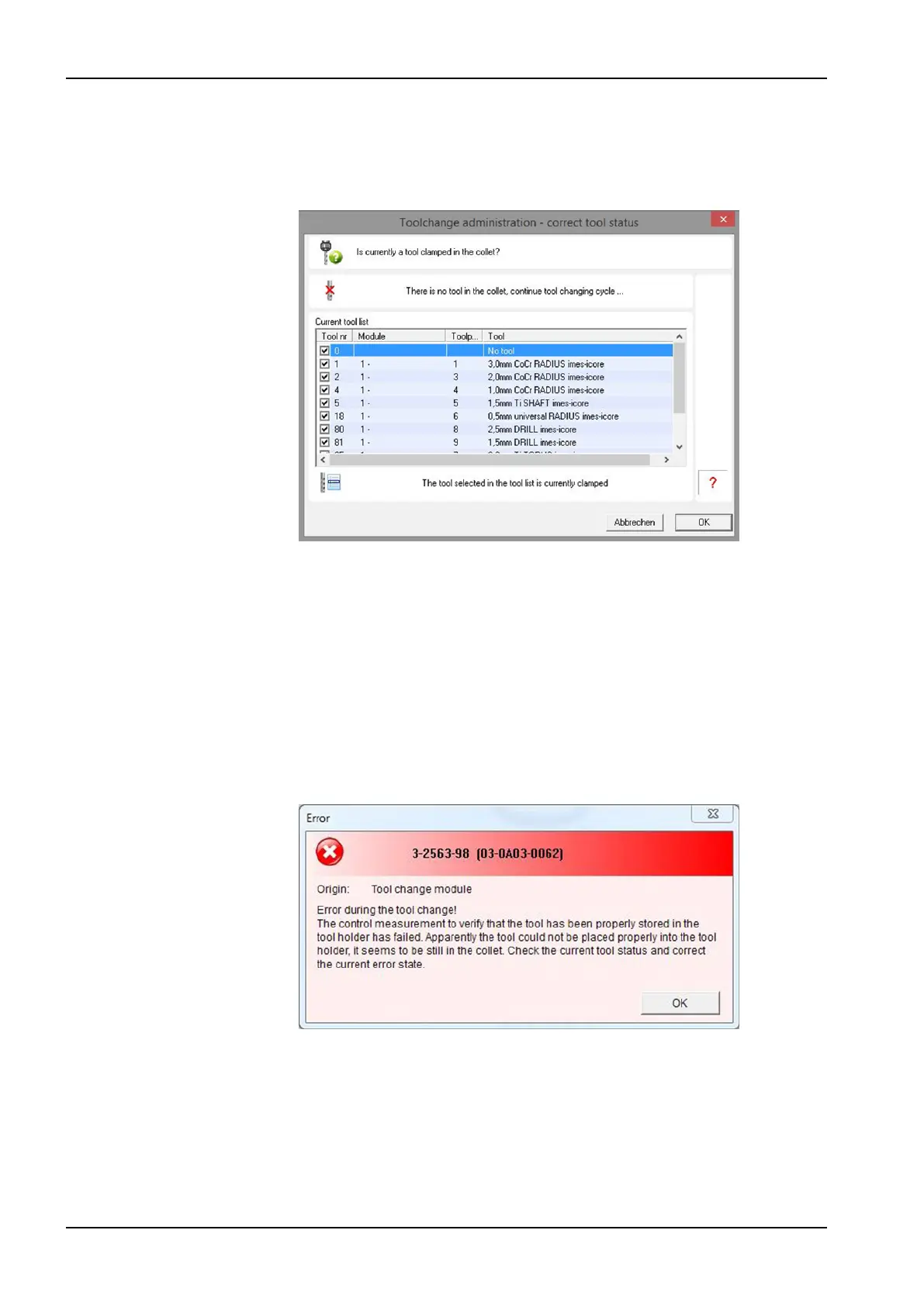 which the tool in the collet chuck originates and confirm the entry. If no tool