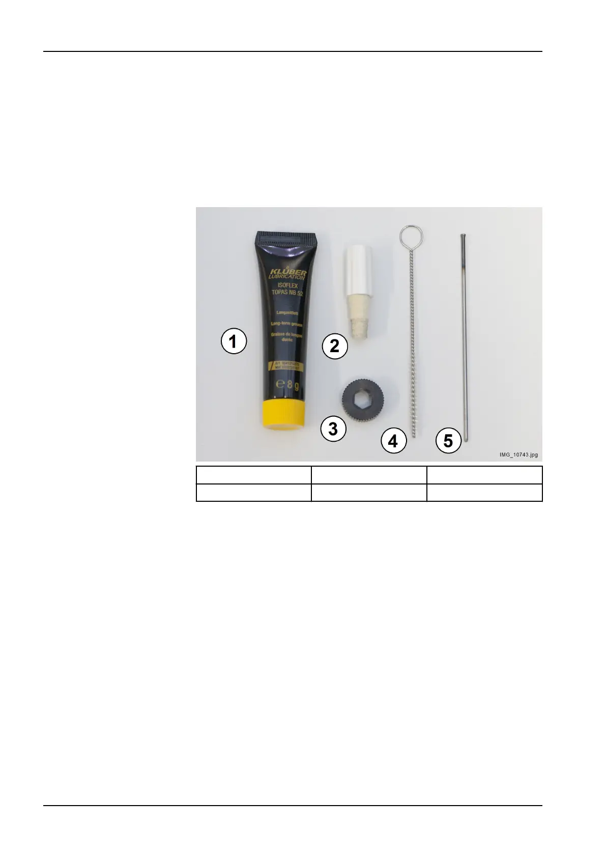 1. Jaw grease 2. Felt cone 3. Turning piece