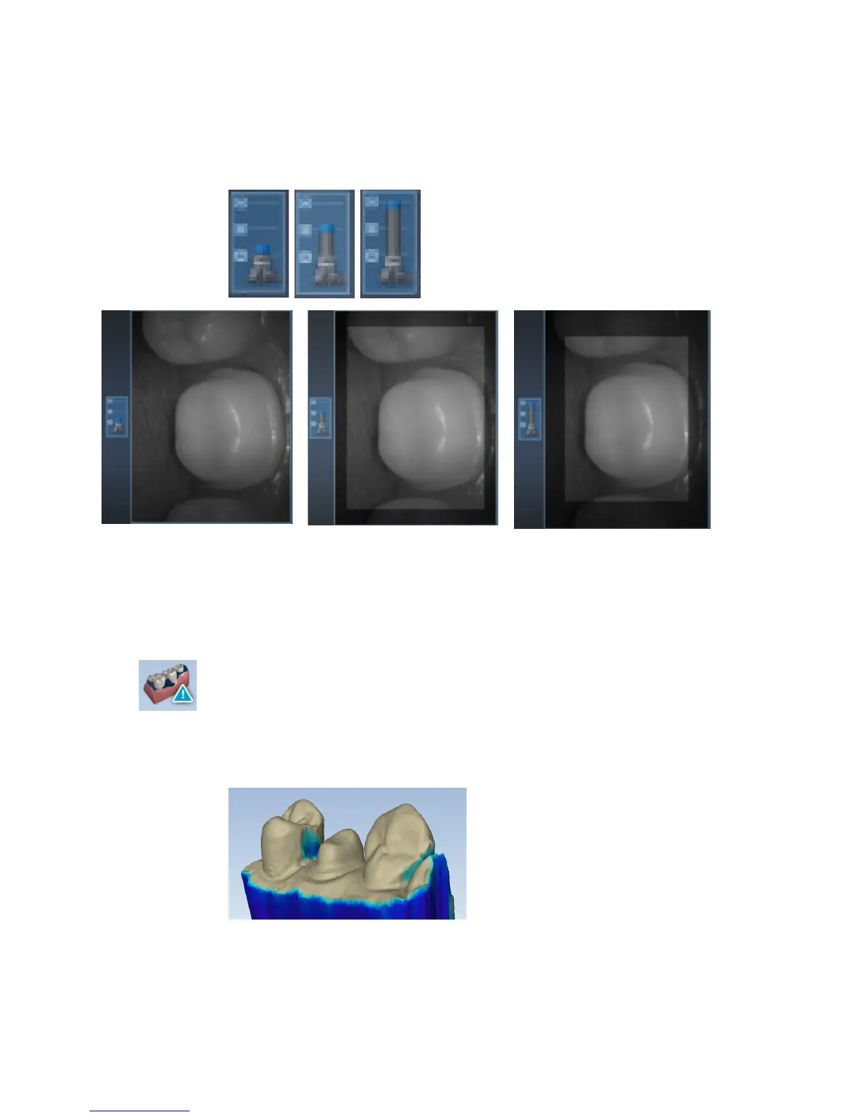 2 Dark areas on your restoration site and interproximal contact areas should be rescanned.