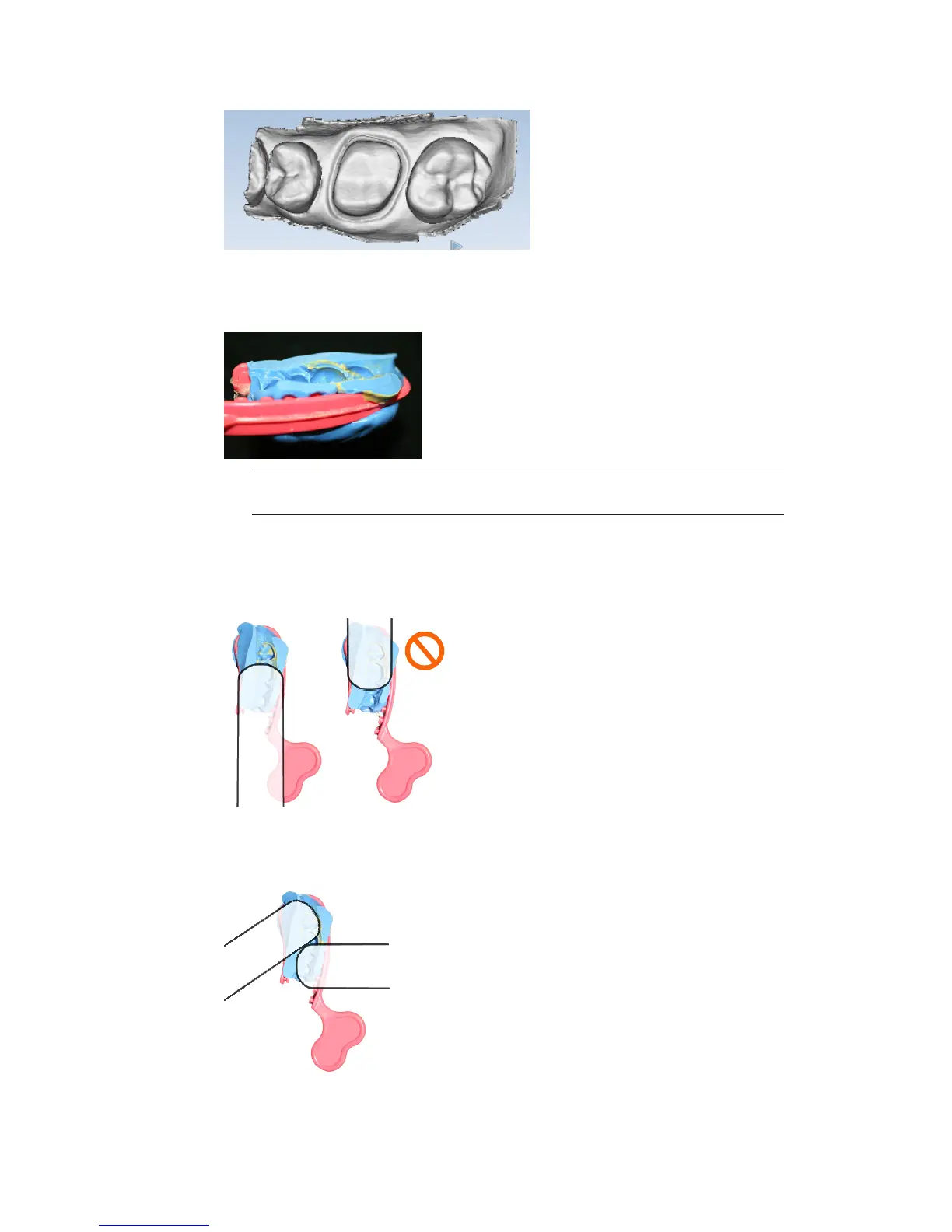 Due to the nature of impressions, the normal positioning of the scanner may not be able to