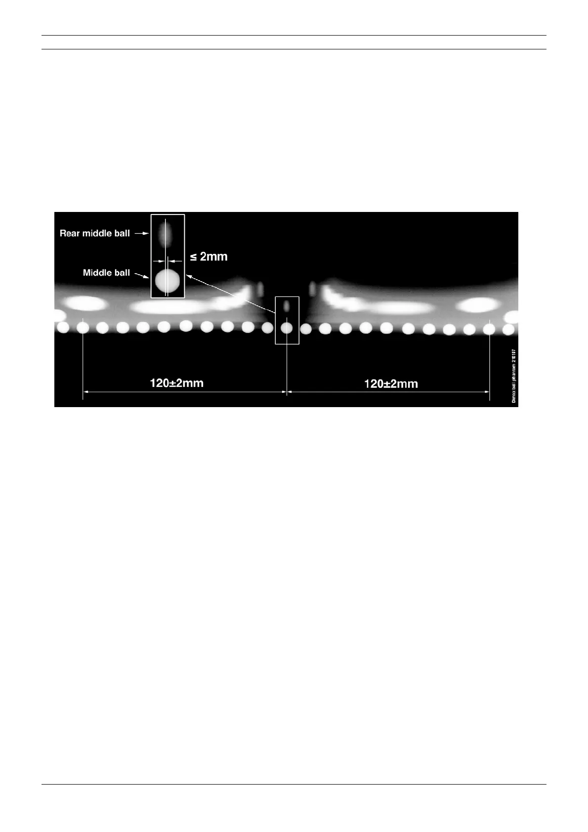 center of the middle ball to the center of the tenth ball on the right side differs more than 2mm
