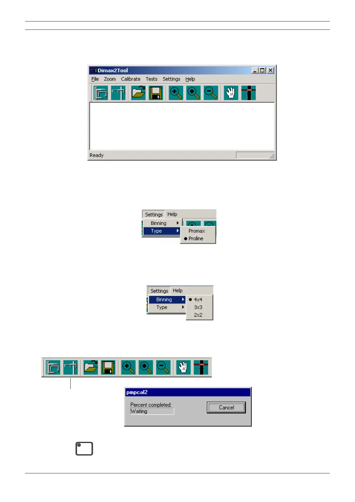 Start the Dimax3 calibration program by double-clicking the Dimax2Tool.exe program icon