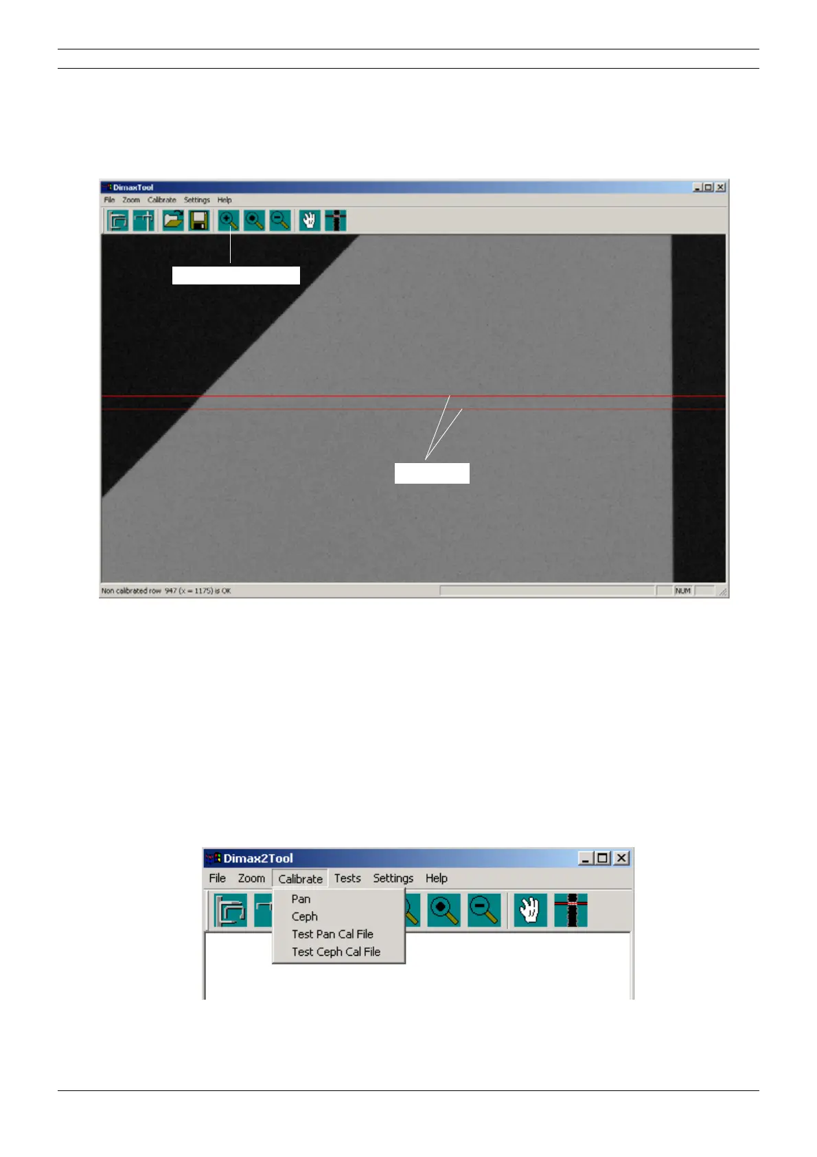 Take a test exposure by selecting Test Ceph Cal File from the Calibrate menu.