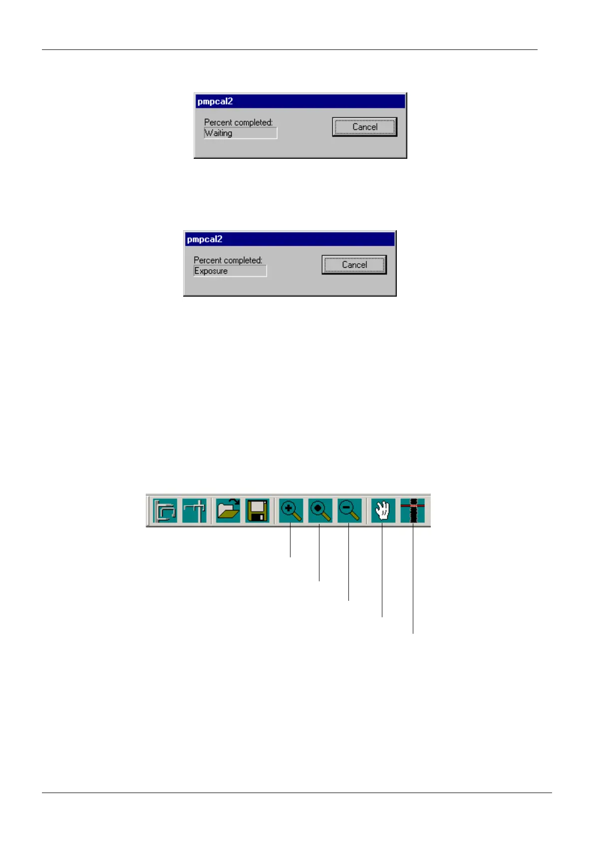 The pmpcal2 window with text Waiting appears.