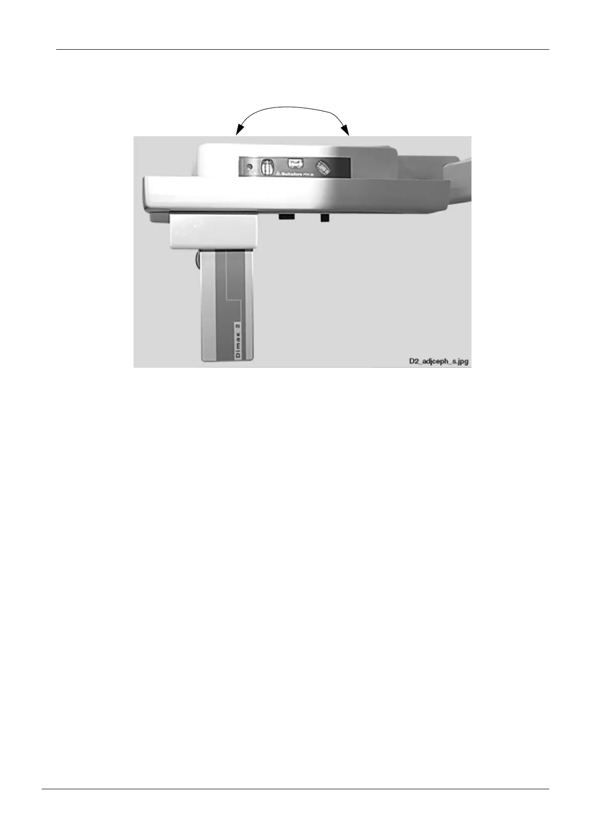 Adjust the cephalostat head support position to horizontal position, if needed (see Fig. 111, 4