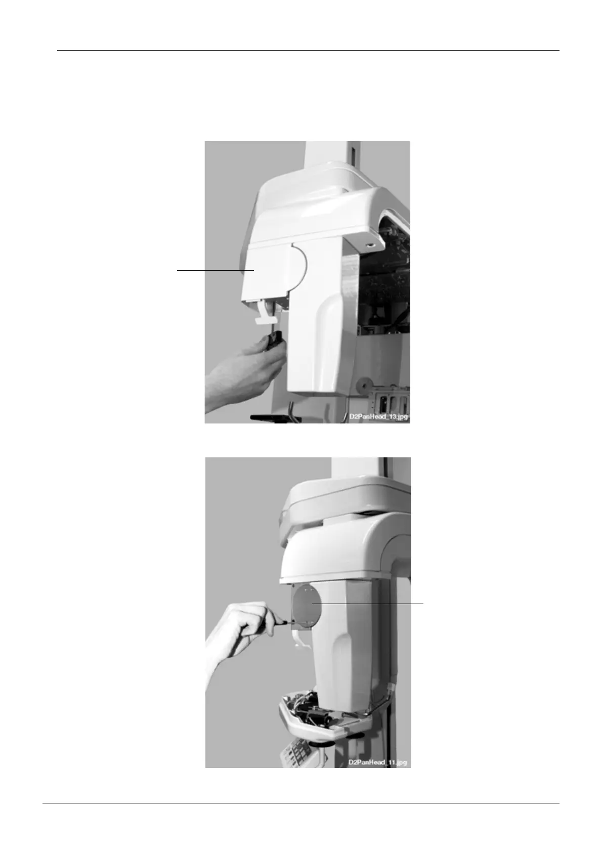 NOTE In case the X-ray is a pan/ceph unit with two fixed sensor heads, the cover is attached
