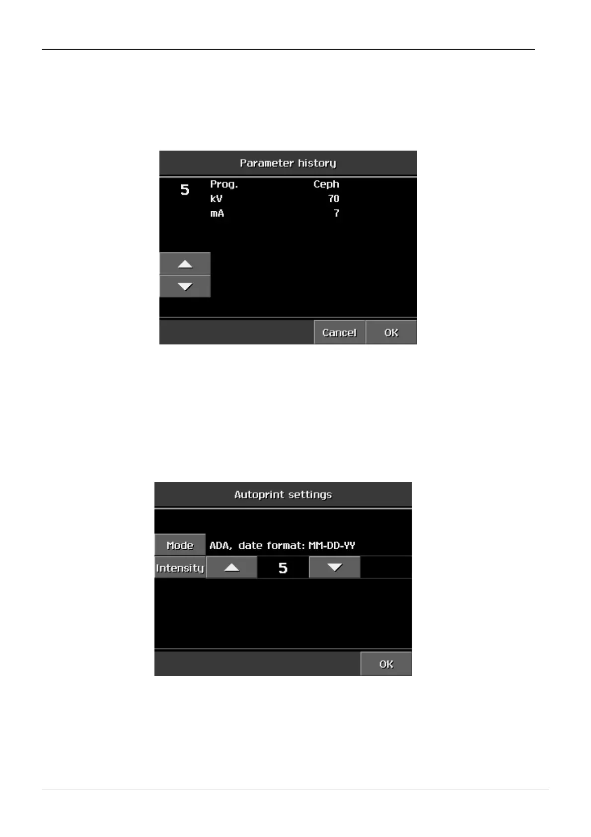 OK field. Exit without taking the parameters into use by touching the Cancel field.