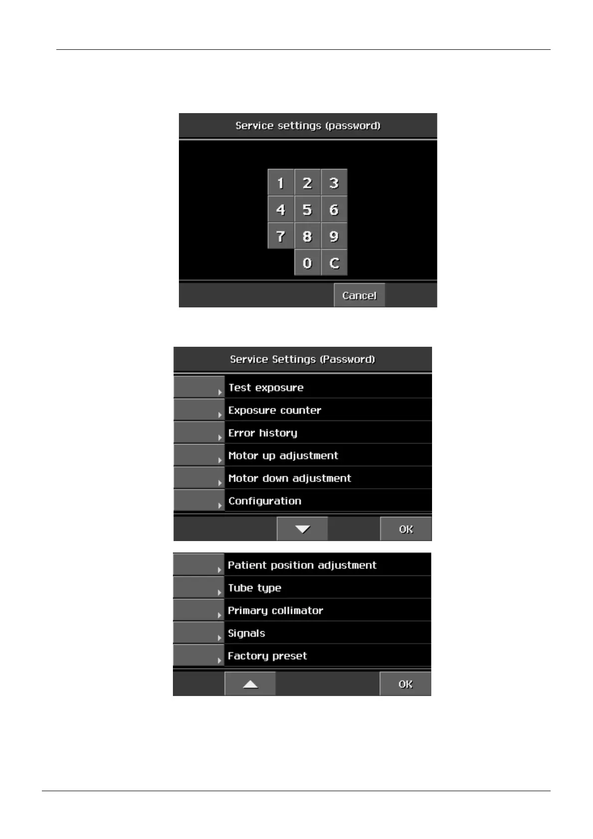 To exit the service settings mode touch OK on the selected service settings mode display.
