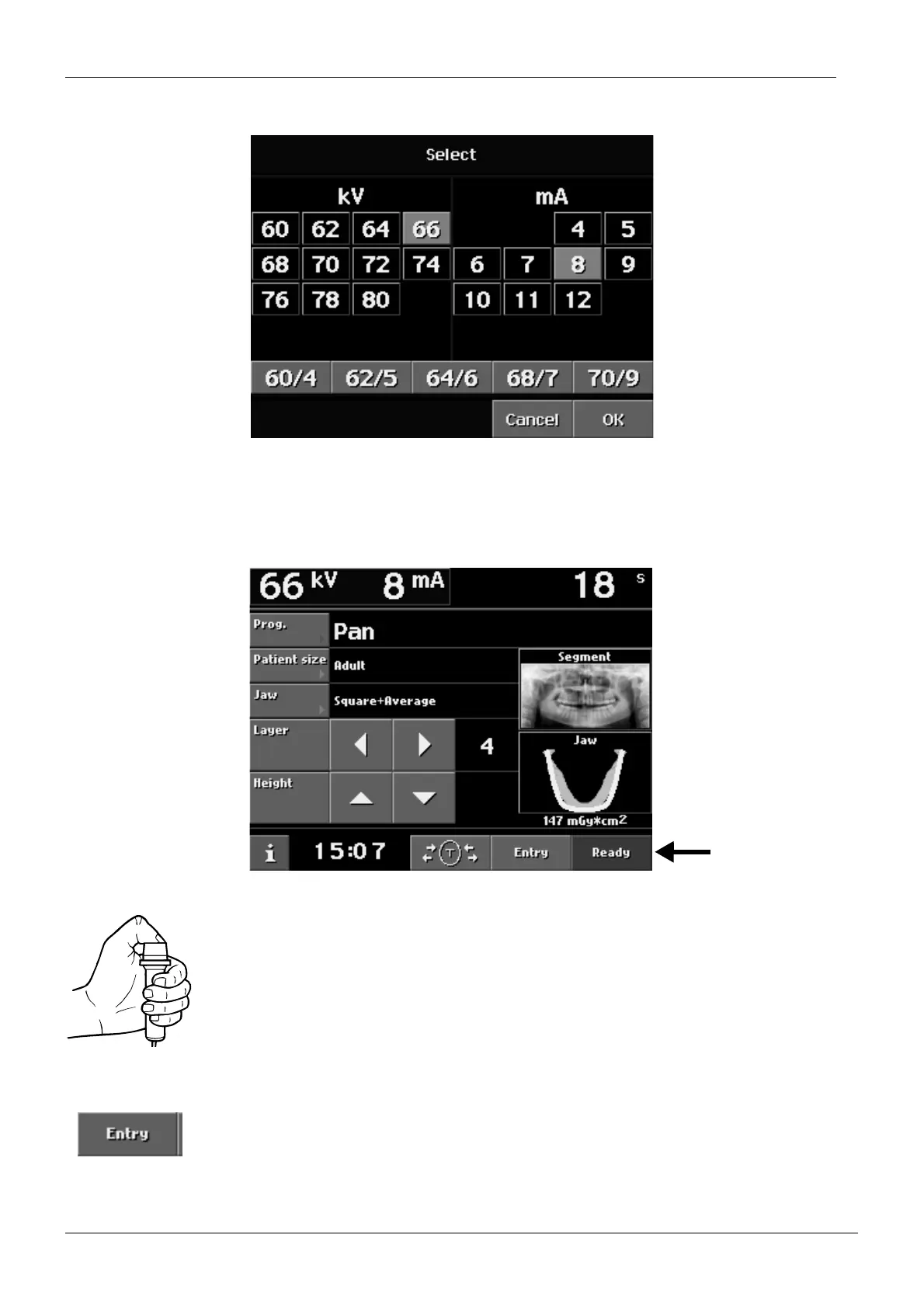 Select a kilovolt value of 60 and a milliampere value of 2. Touch the OK field.