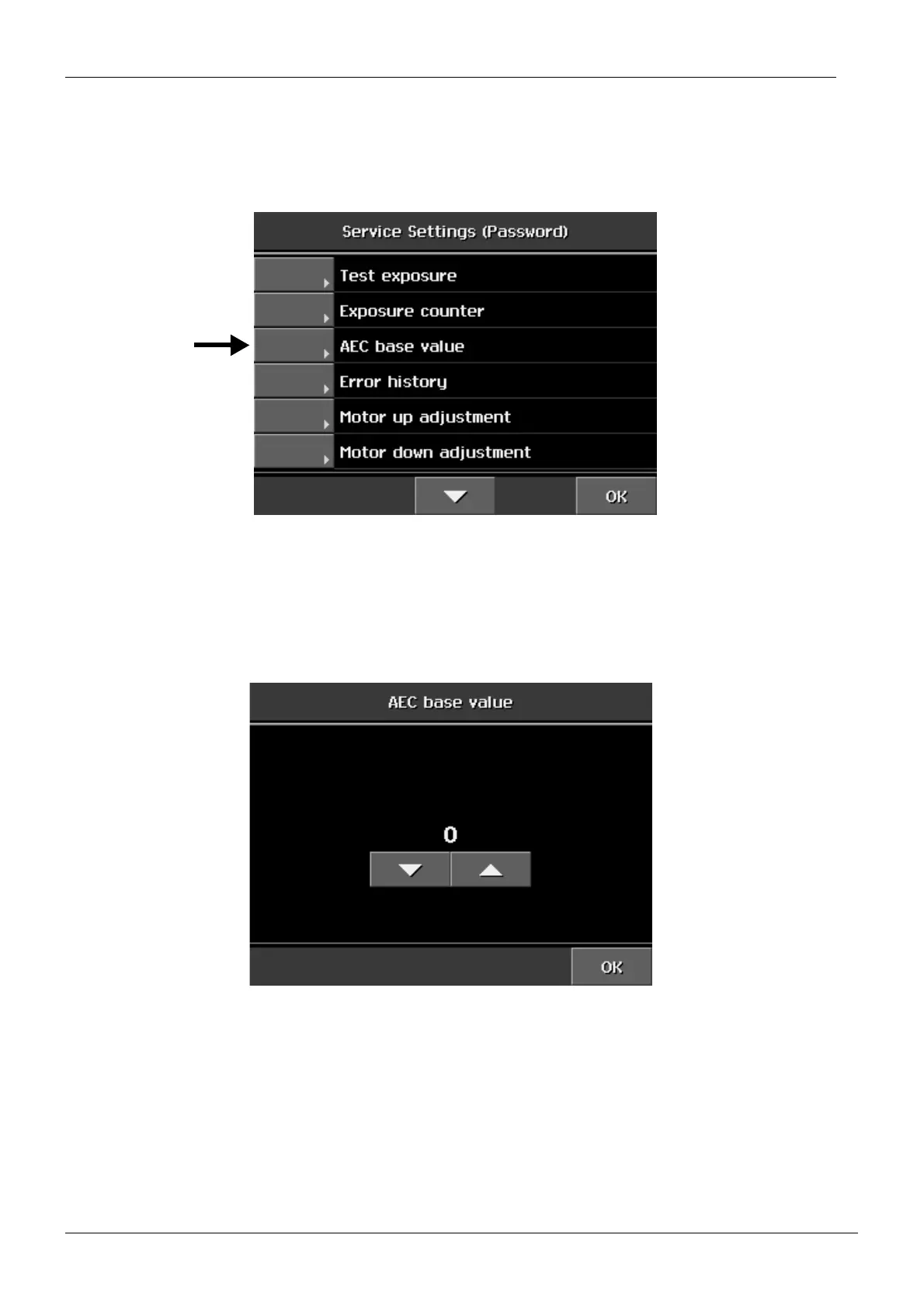 Enter the service settings mode. From the list that appears select AEC base value.