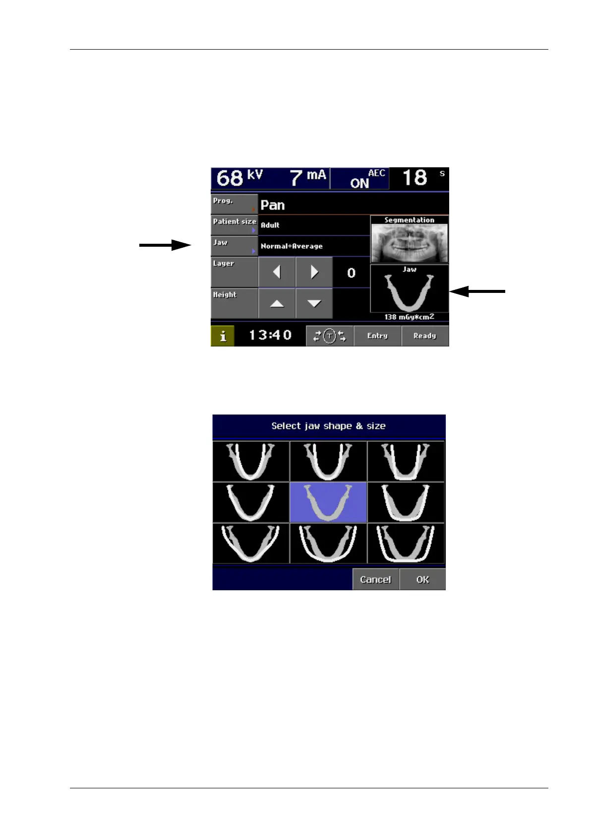 Touch the Jaw field on the main display, or