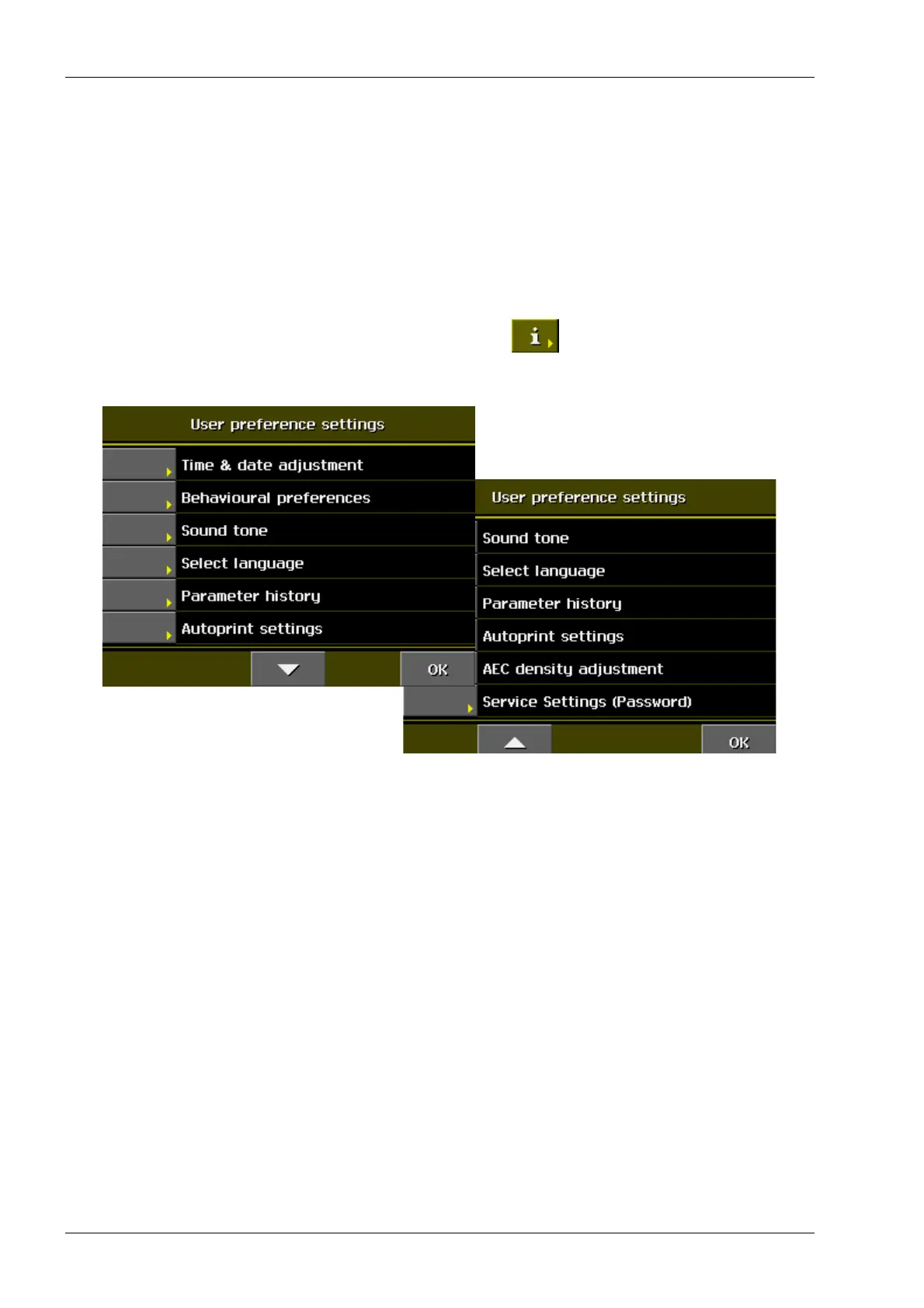 To enter the list of the User settings, first touch the