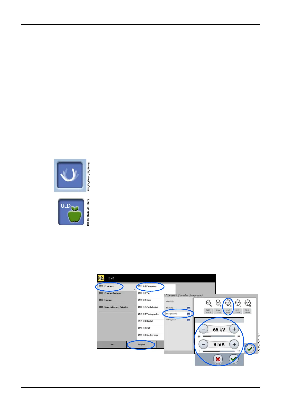 shown with faded buttons. Select also the ULD (Ultra Low Dose)