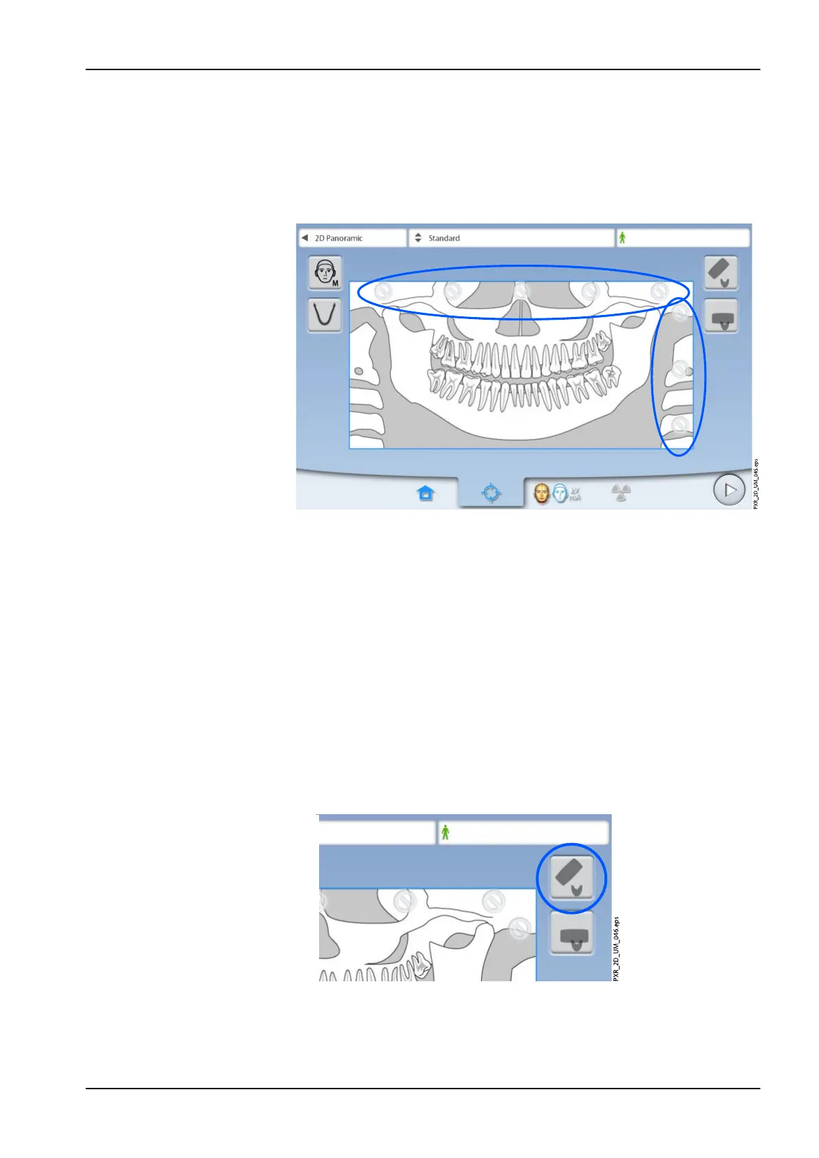 Use the buttons on the right of the screen to select the patient entry position.