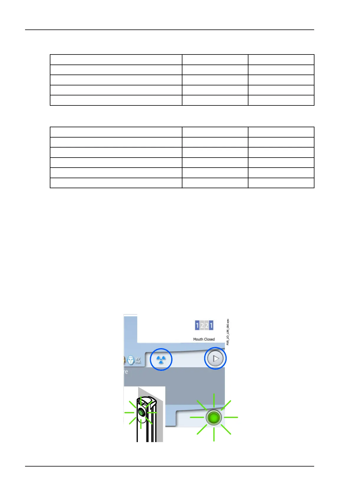 flashing and stay on continuously when the X-ray system is ready for an