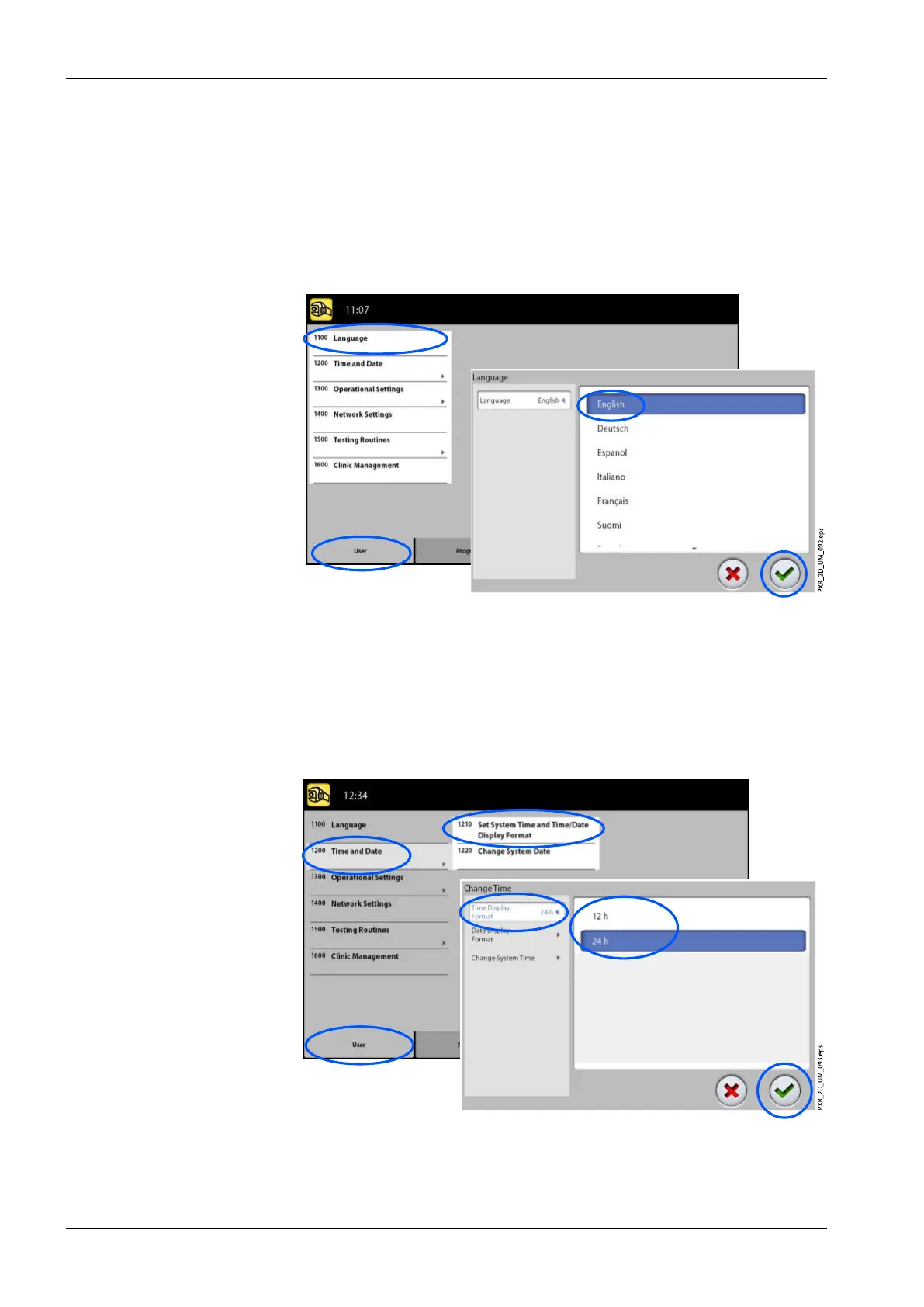 1. Select User > 1200 Time and Date > 1210 Set System Time and Time /