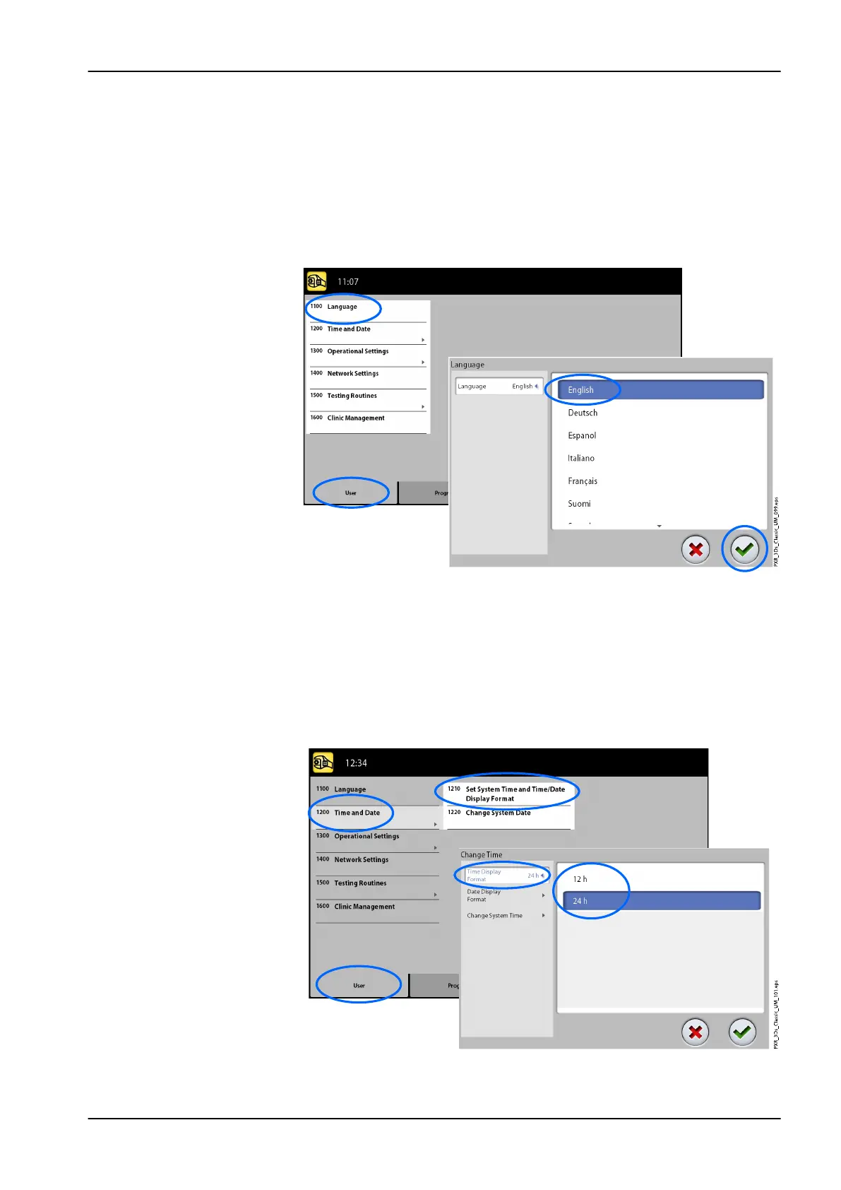 1. Select User > 1200 Time and Date > 1210 Set System Time and Time /