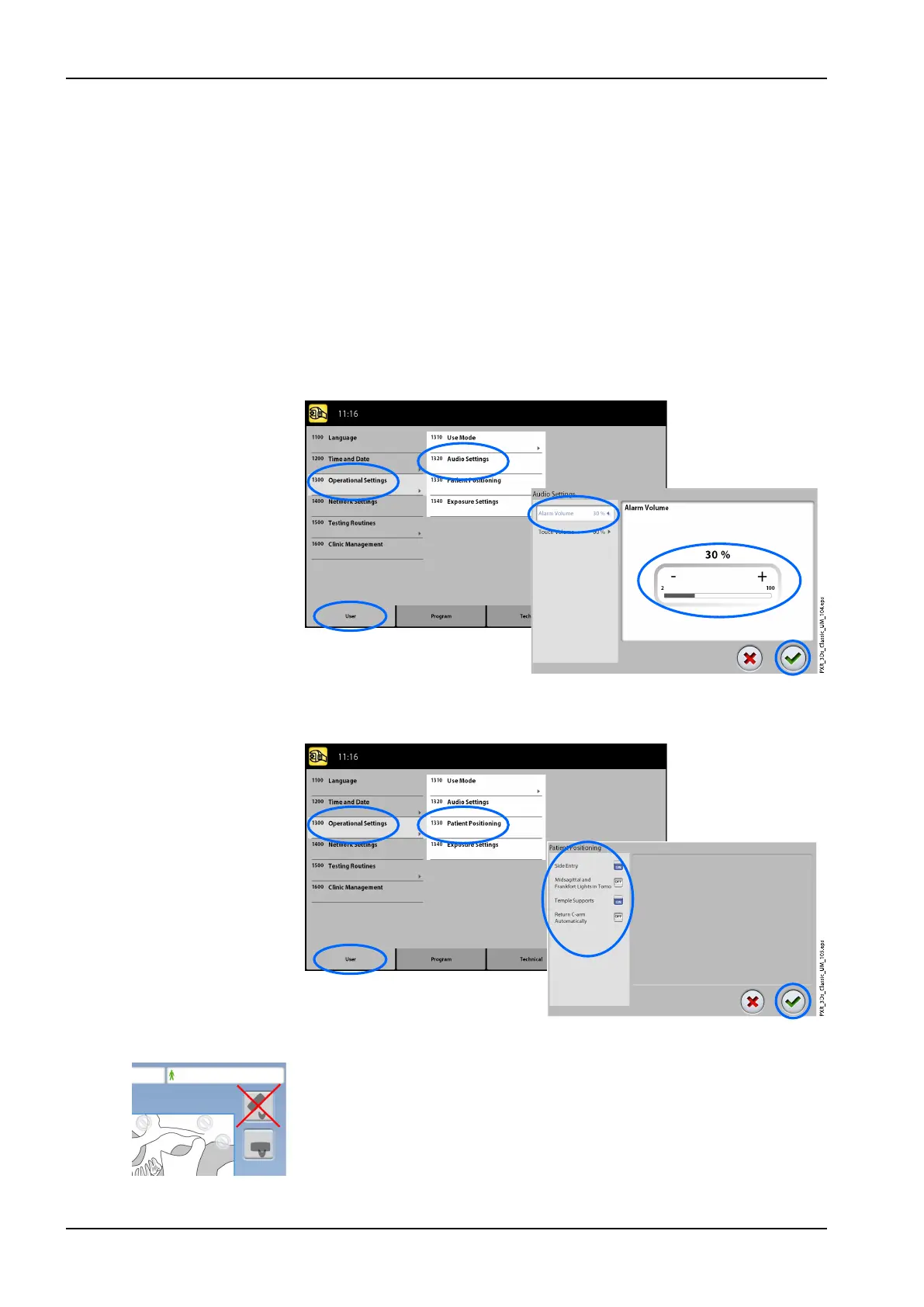 1. Select User > 1300 Operational Settings > 1330 Patient Positioning.