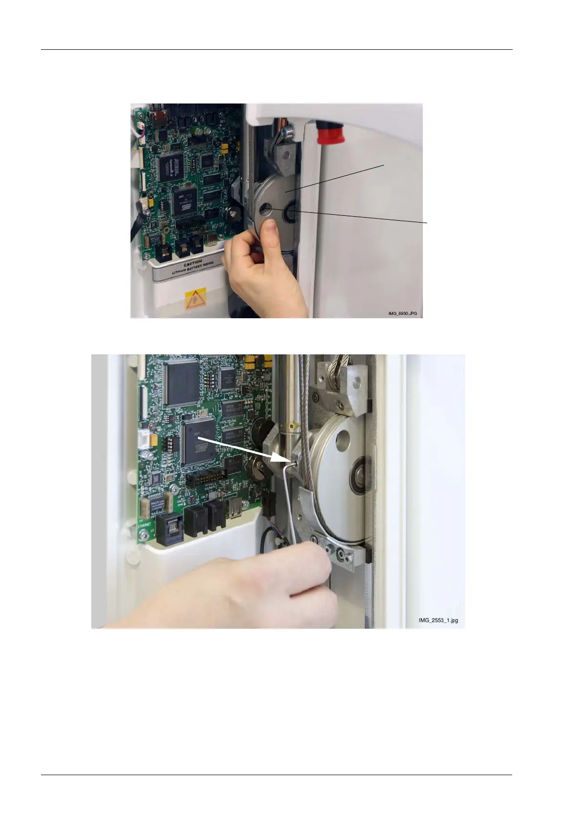 Rotate the lower steel cable pulley until the disc hole is positioned directly over the spindle