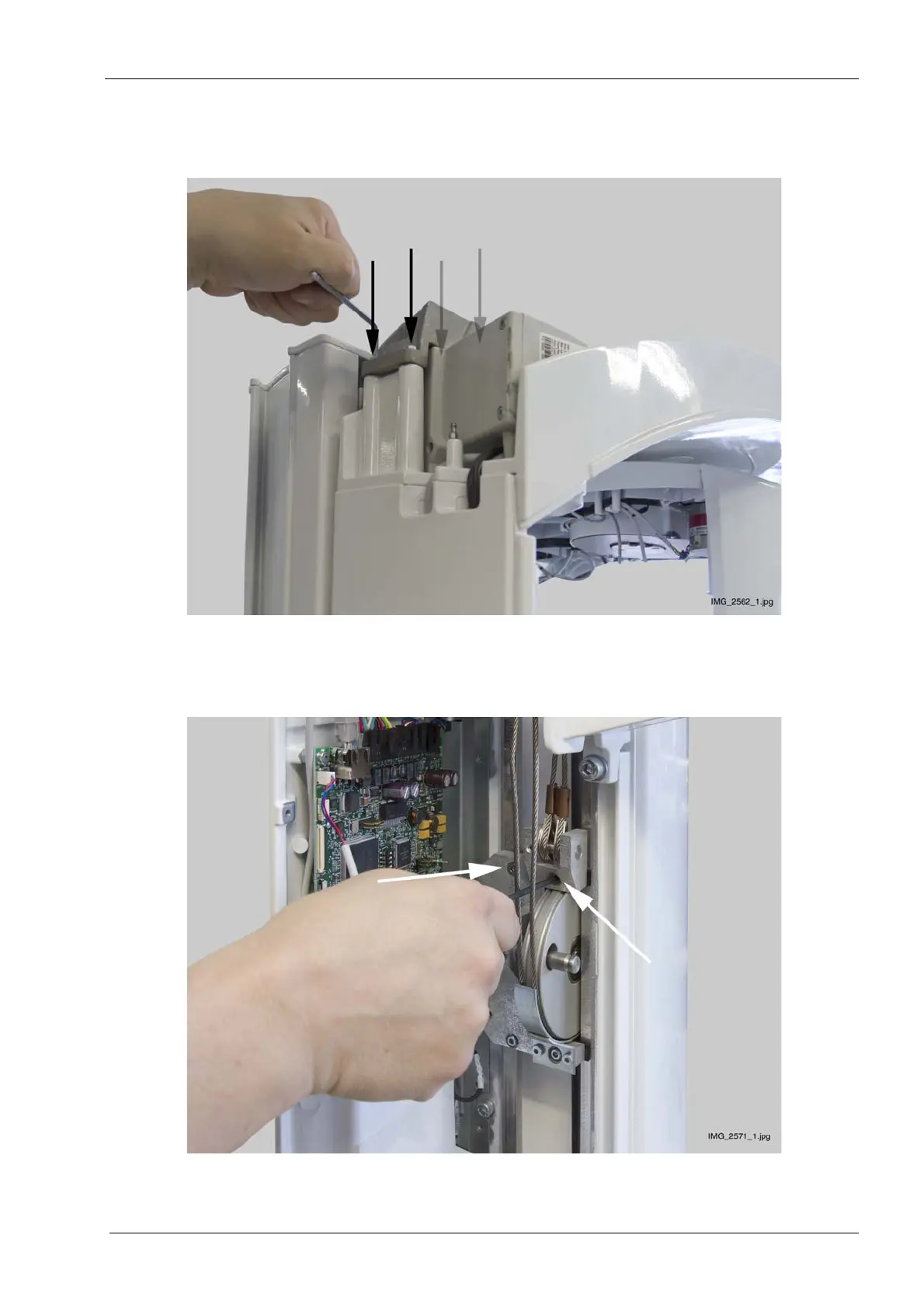 Unscrew the four screws that attach the lift motor mounting block to the upper arm frame.