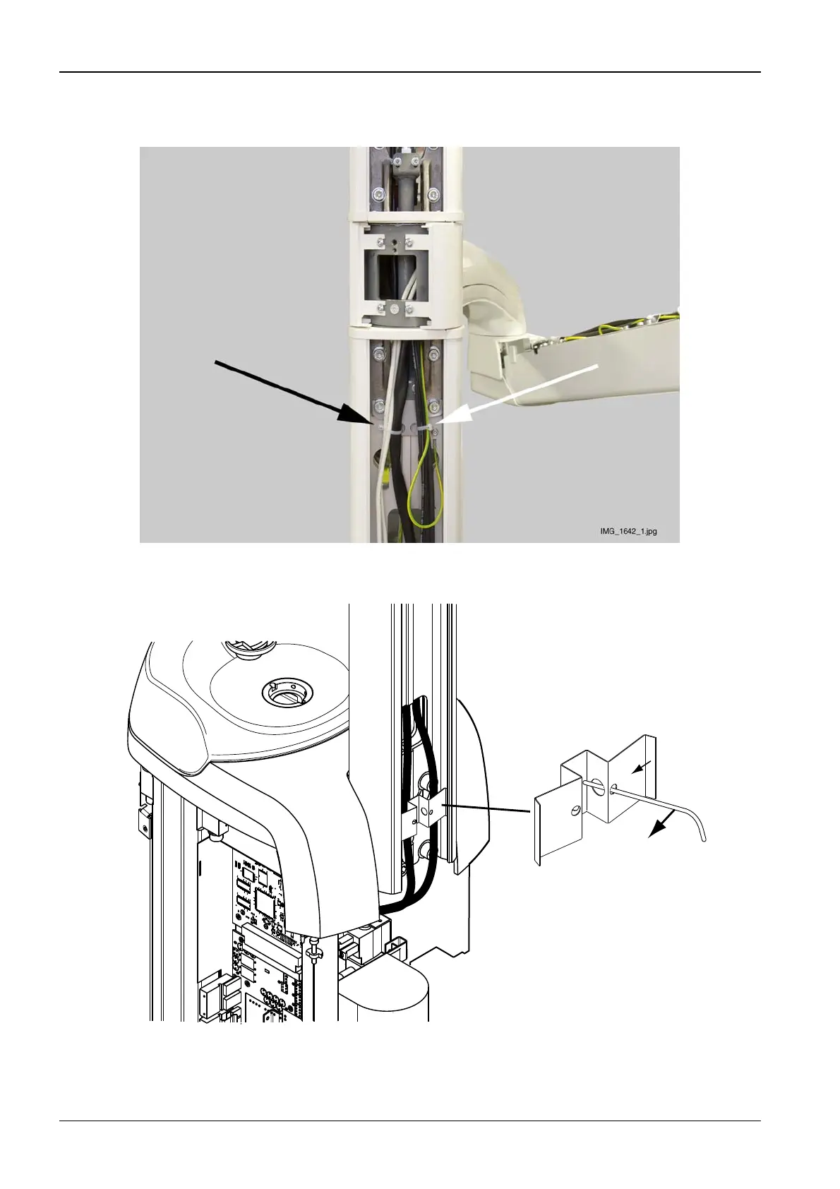 upwards and attach them to the pylon with cable ties (black and white arrow).