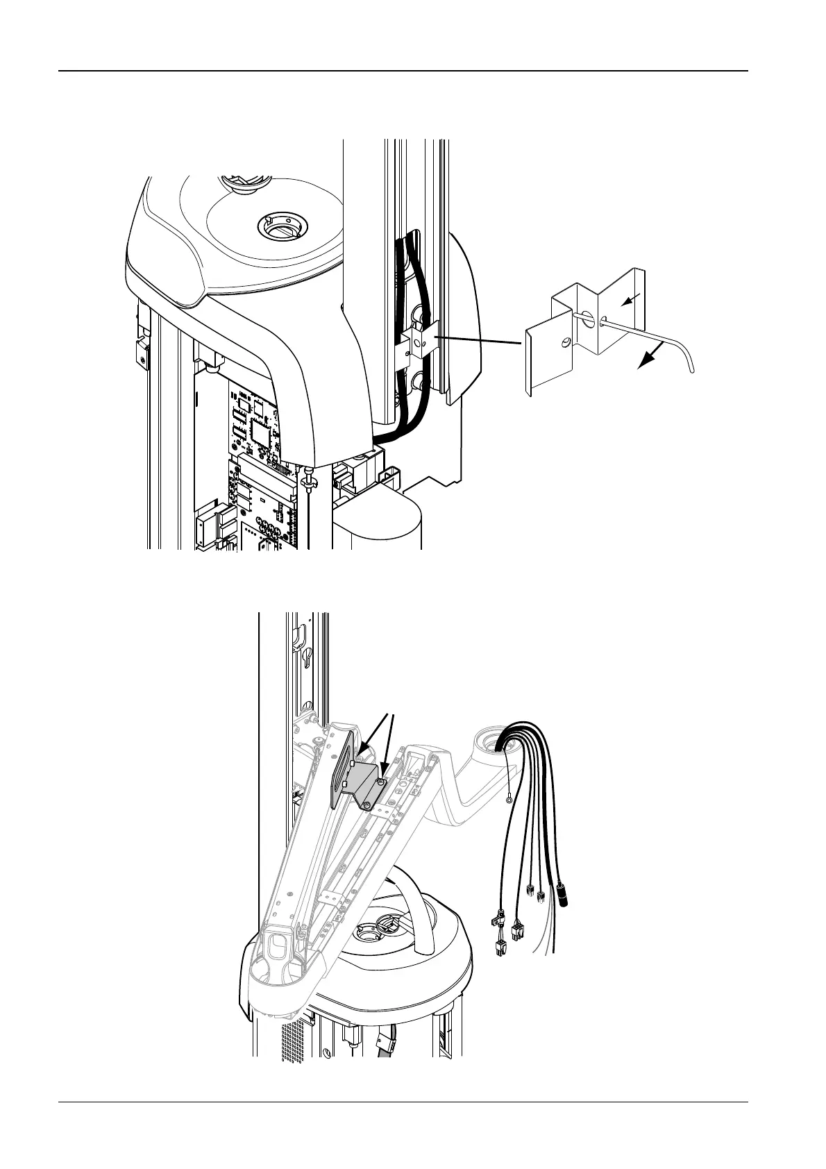 Route the arm cables into the cuspidor. Secure the cables with a cable support as follows.