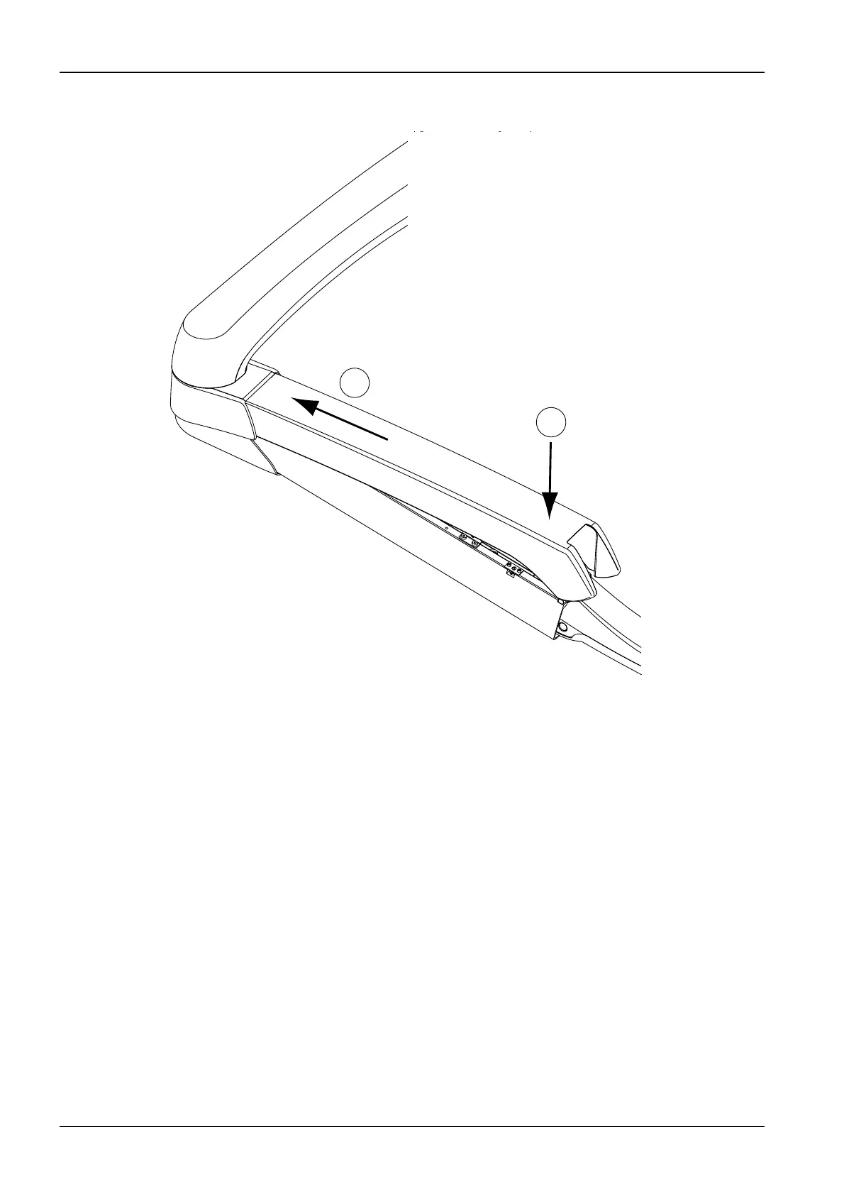 Press the OP delivery arm to its lowest position and slide the cover to below the joint cover (1)