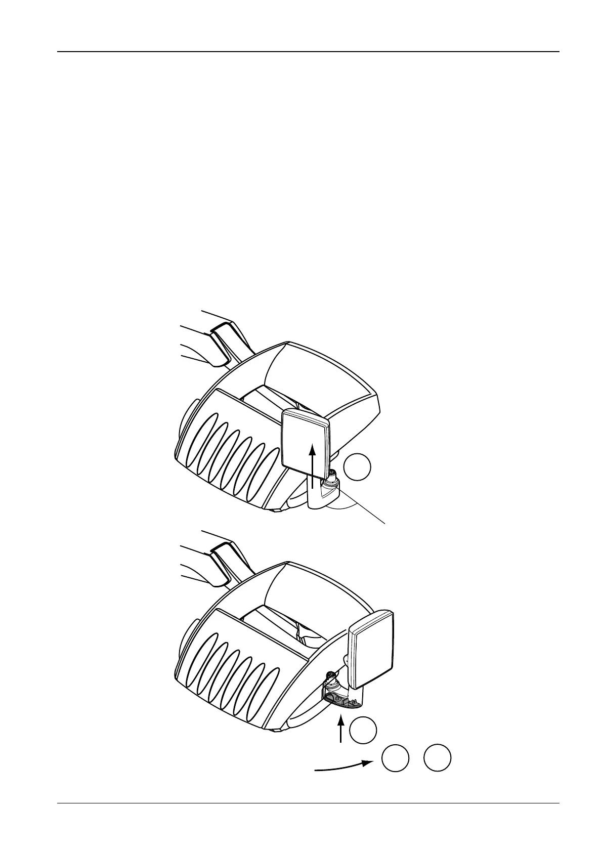 rotating the GUI arm counterclockwise until you hear a click sound (2 & 3).