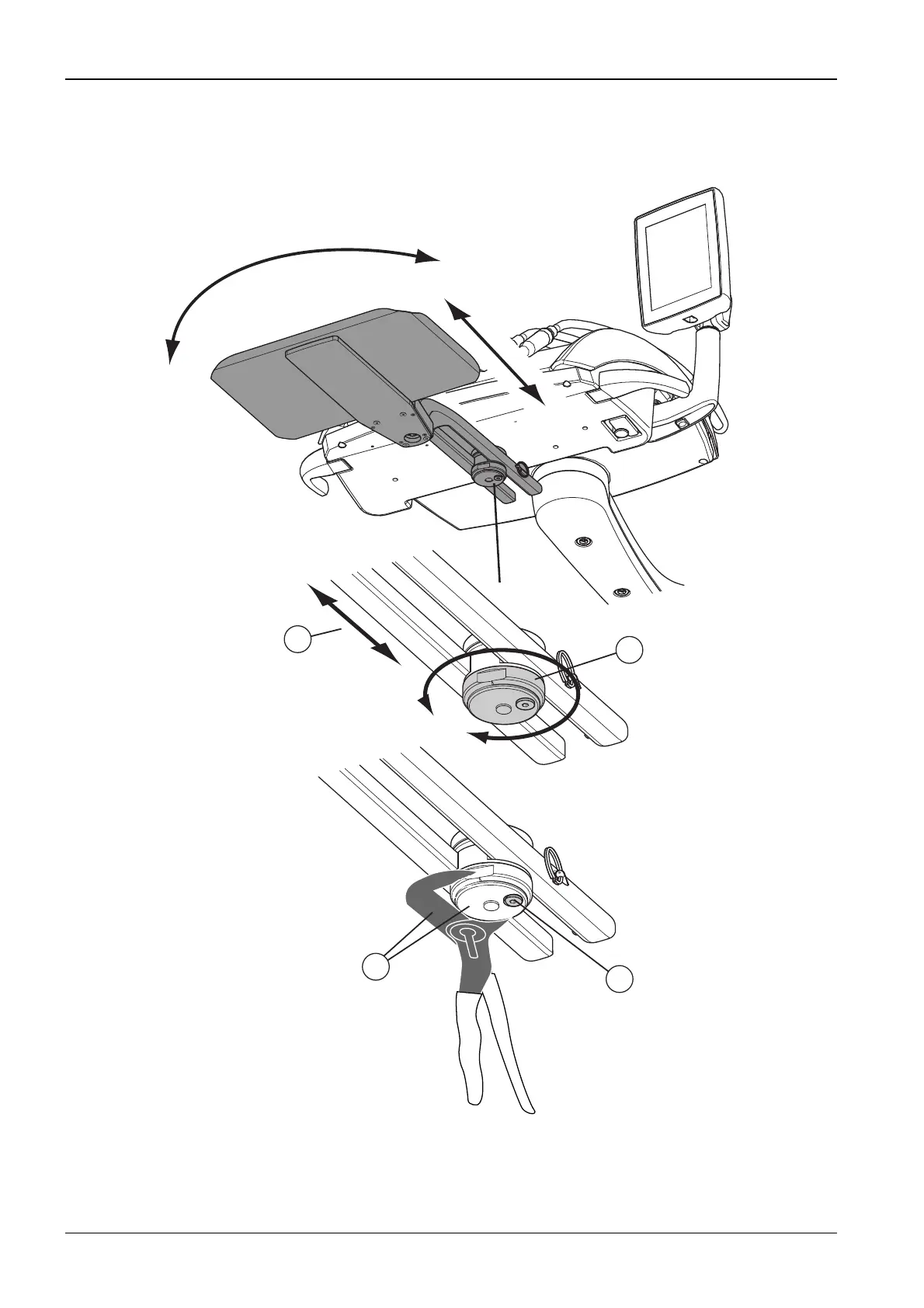 The friction of the tray arm movements can be adjusted. Loosen the joint attachment screw