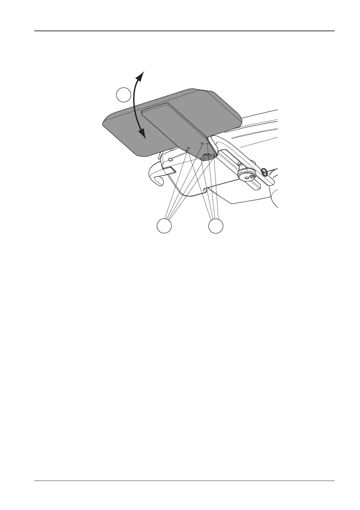 The angle of the tray table can be adjusted as follows. Loosen the securing screws (1) and