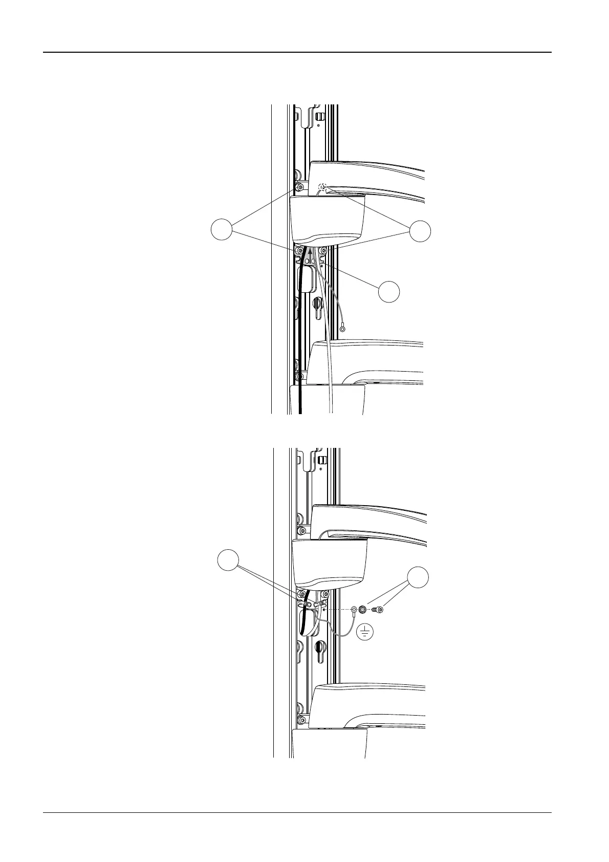 Secure the cables with cable ties (1). Attach the grounding cable to the pylon (2).