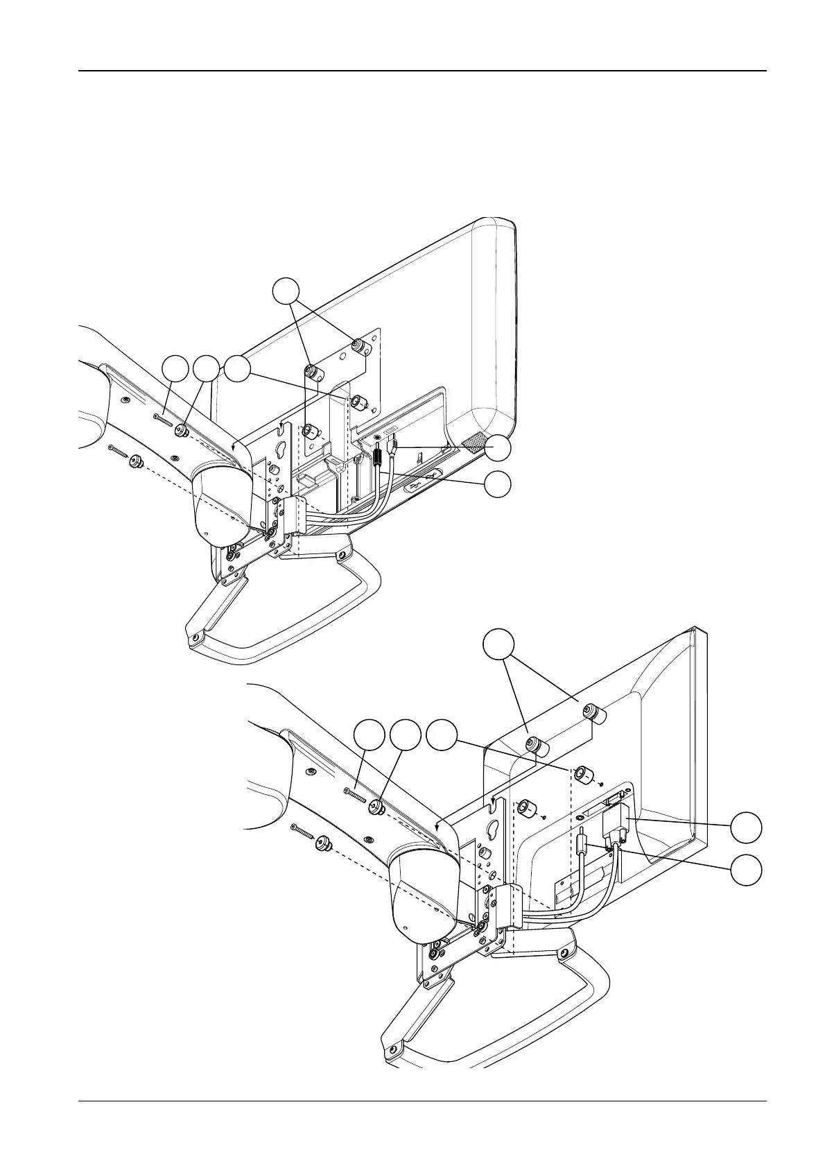 attachment plate grooves (3). Attach the lower attachment bushings to the monitor as shown