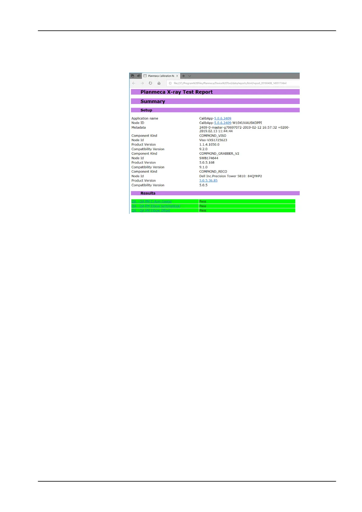 If the QA tests were successful, the test results report shows each test with