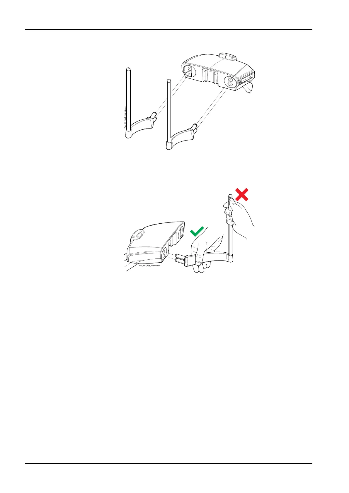 2. Insert the support bars into the connectors in the patient support base.
