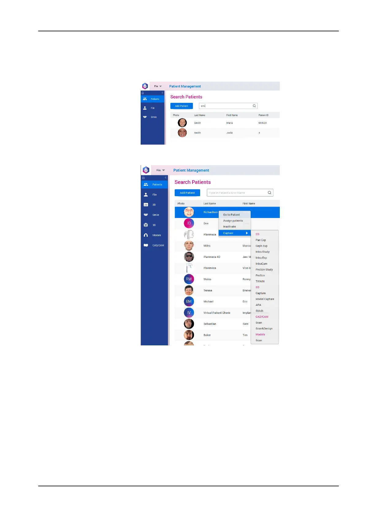 2. Right-click on the patient and select Capture followed by Pan Exp for 2D