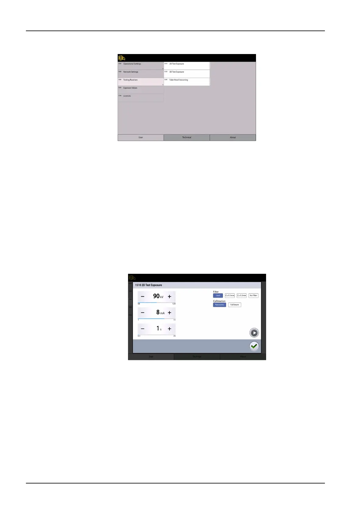 1. Select User > 1500 Testing Routines > 1520 3D Test Exposure.