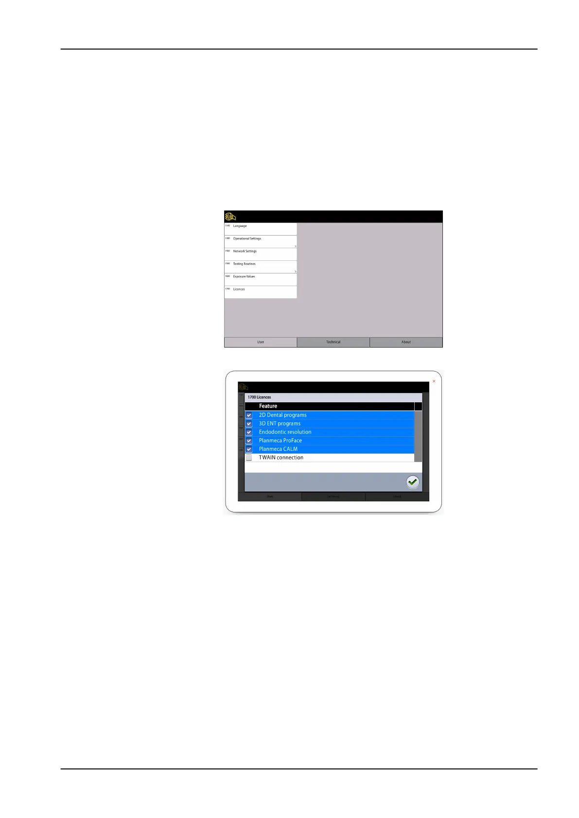 1. Select User > 1700 Licences.