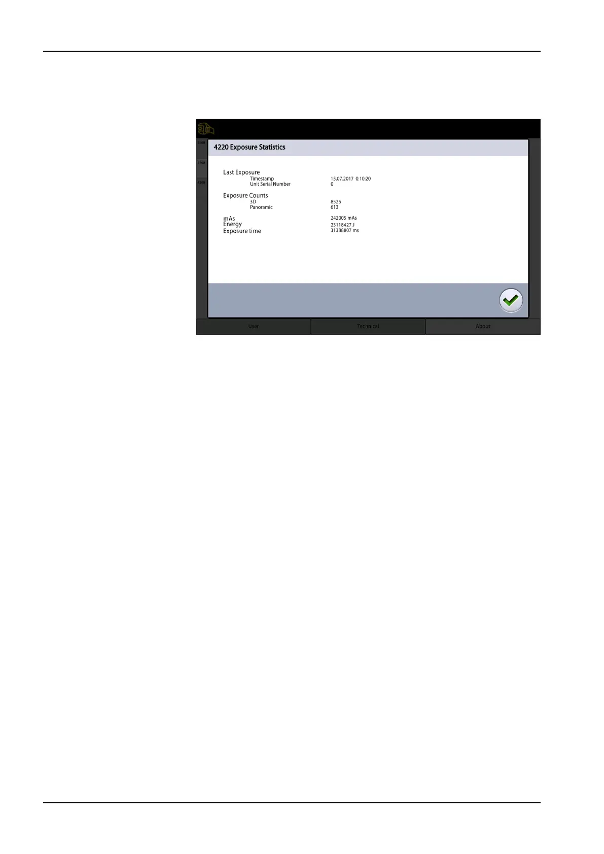 Select About > 4200 Archive > 4220 Exposure Statistics to view statistical