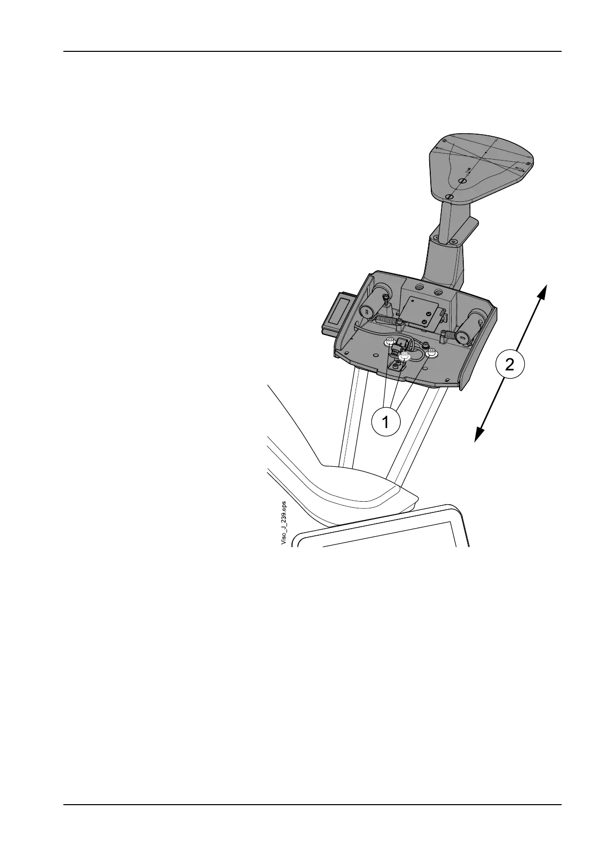 2. Loosen three patient support base attachment screws (1) and adjust the